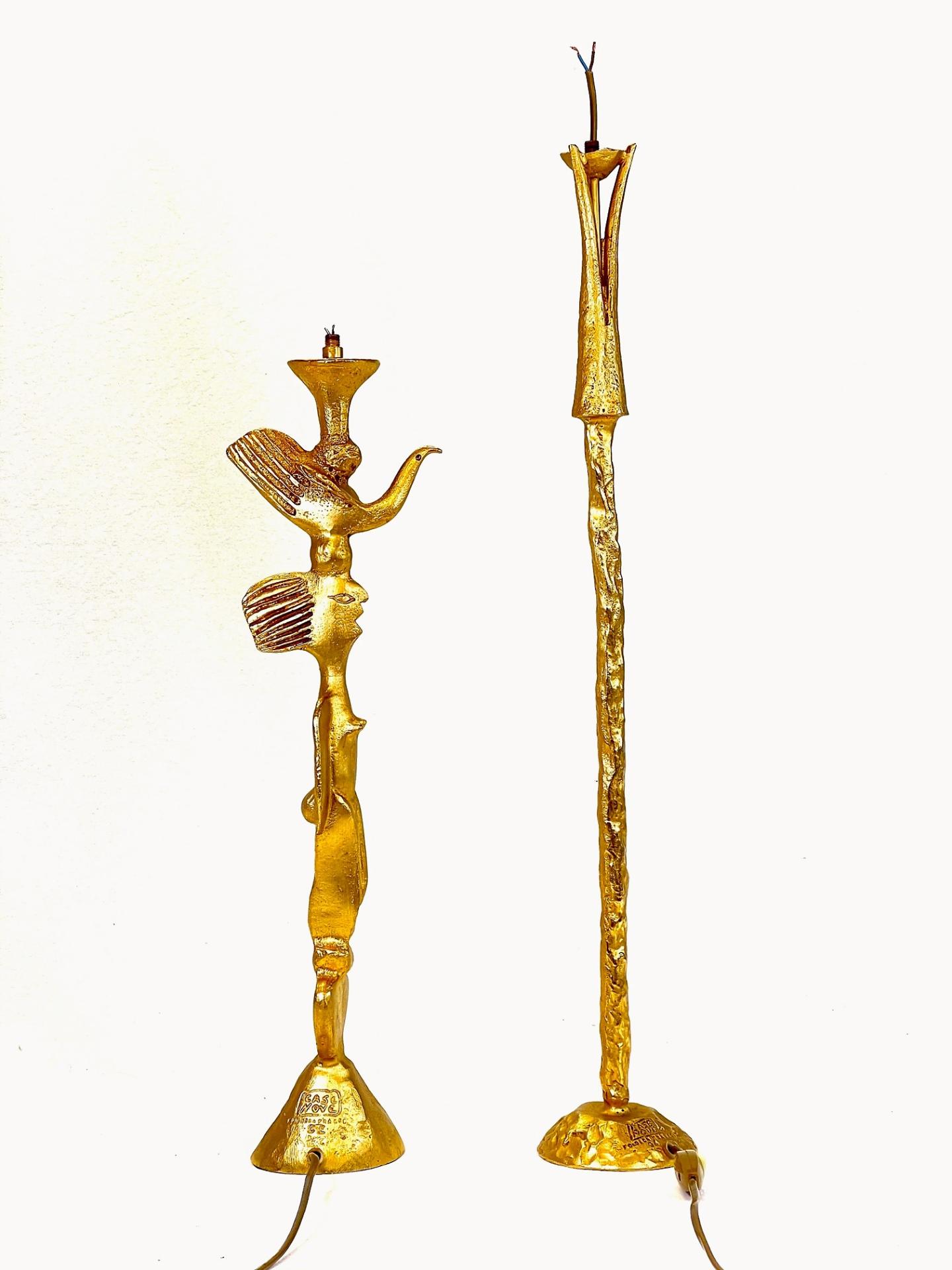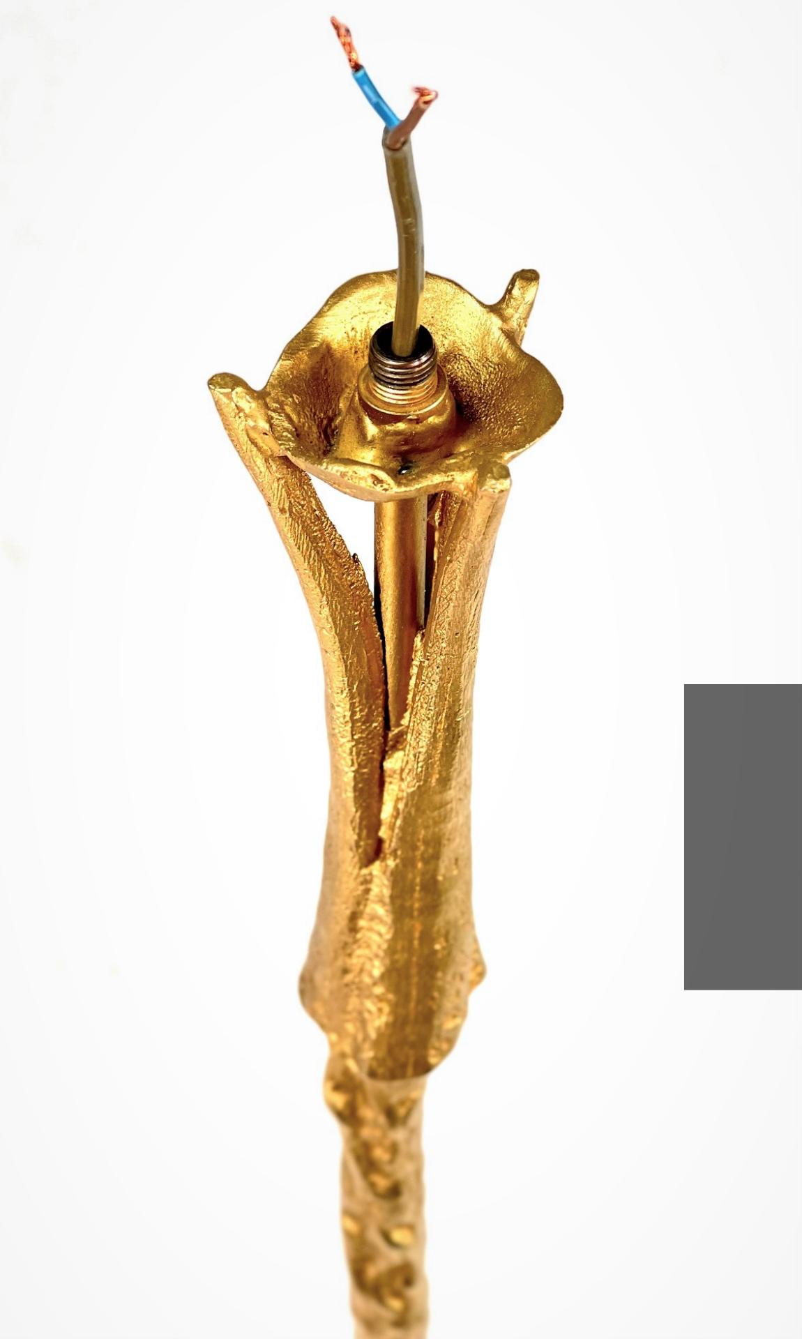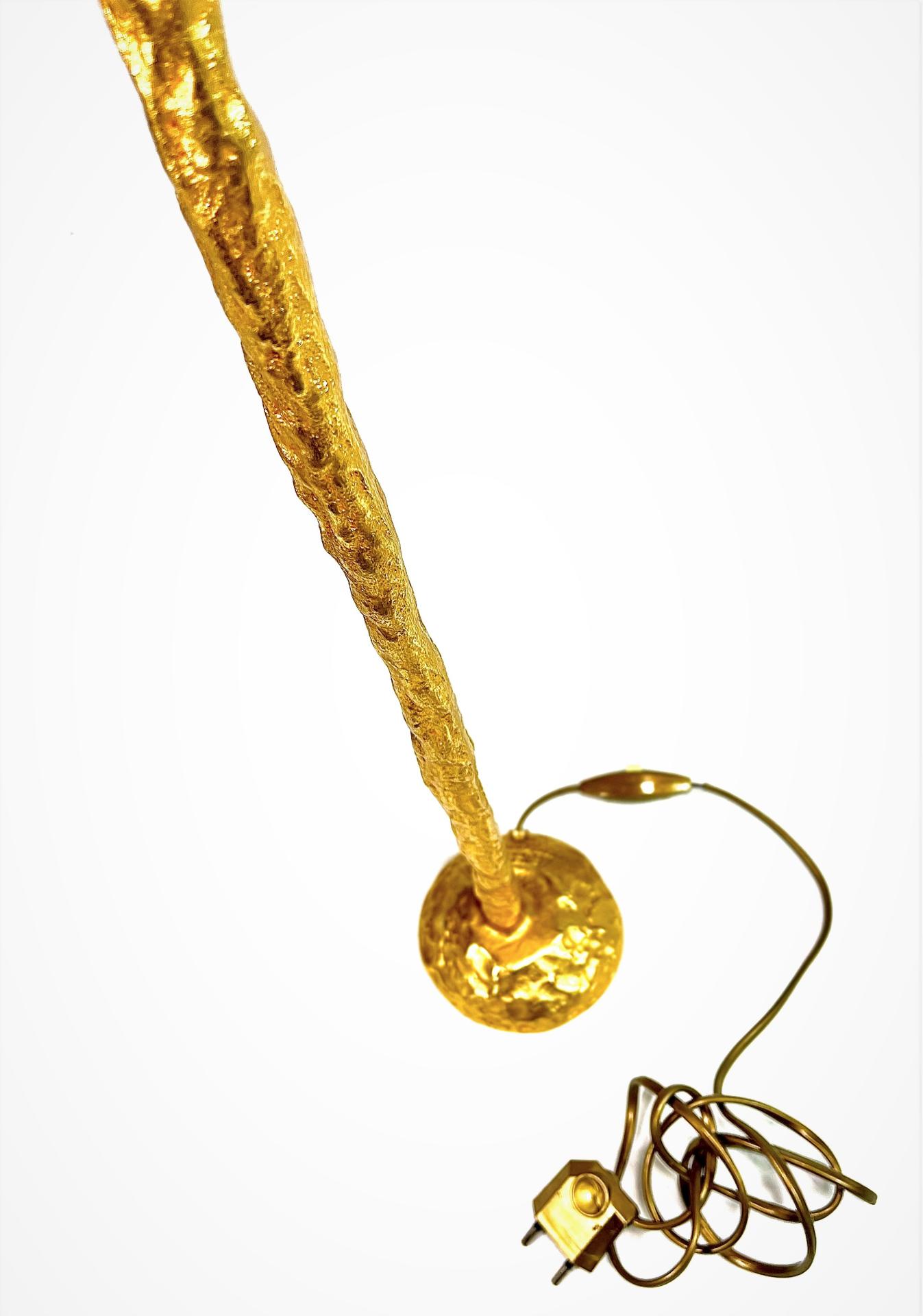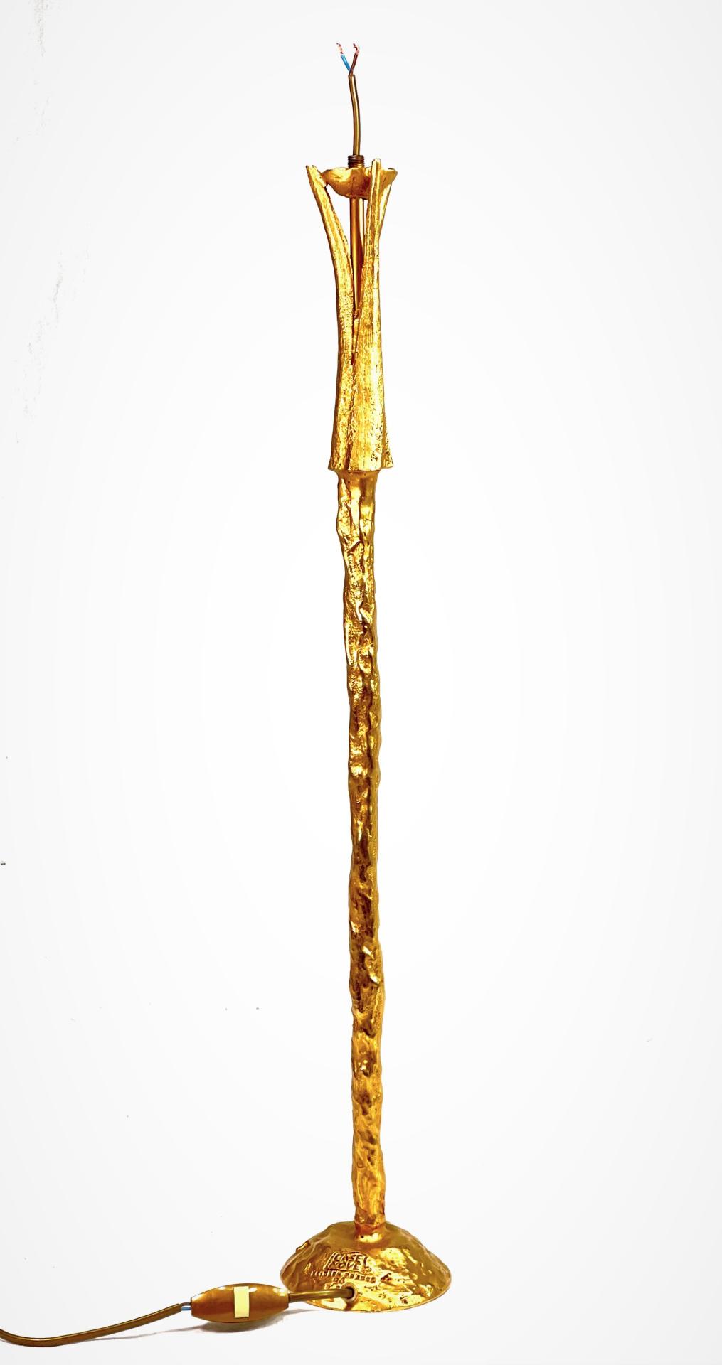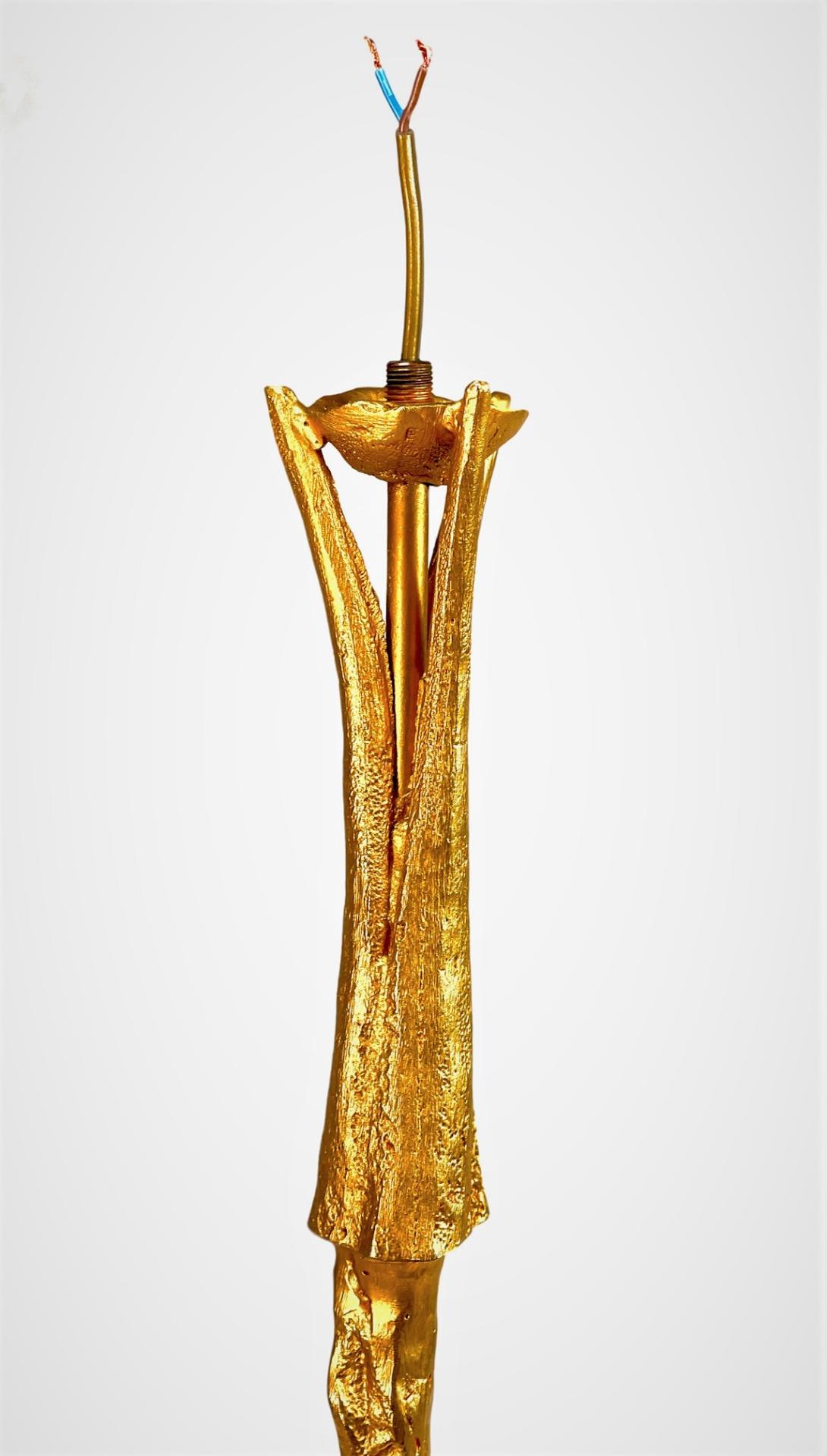 GRAND ET ELEGANT PIED DE LAMPE EN BRONZE, à effet martelé et patine dorée, signé à la base, circa 1990. Ampoule : B22