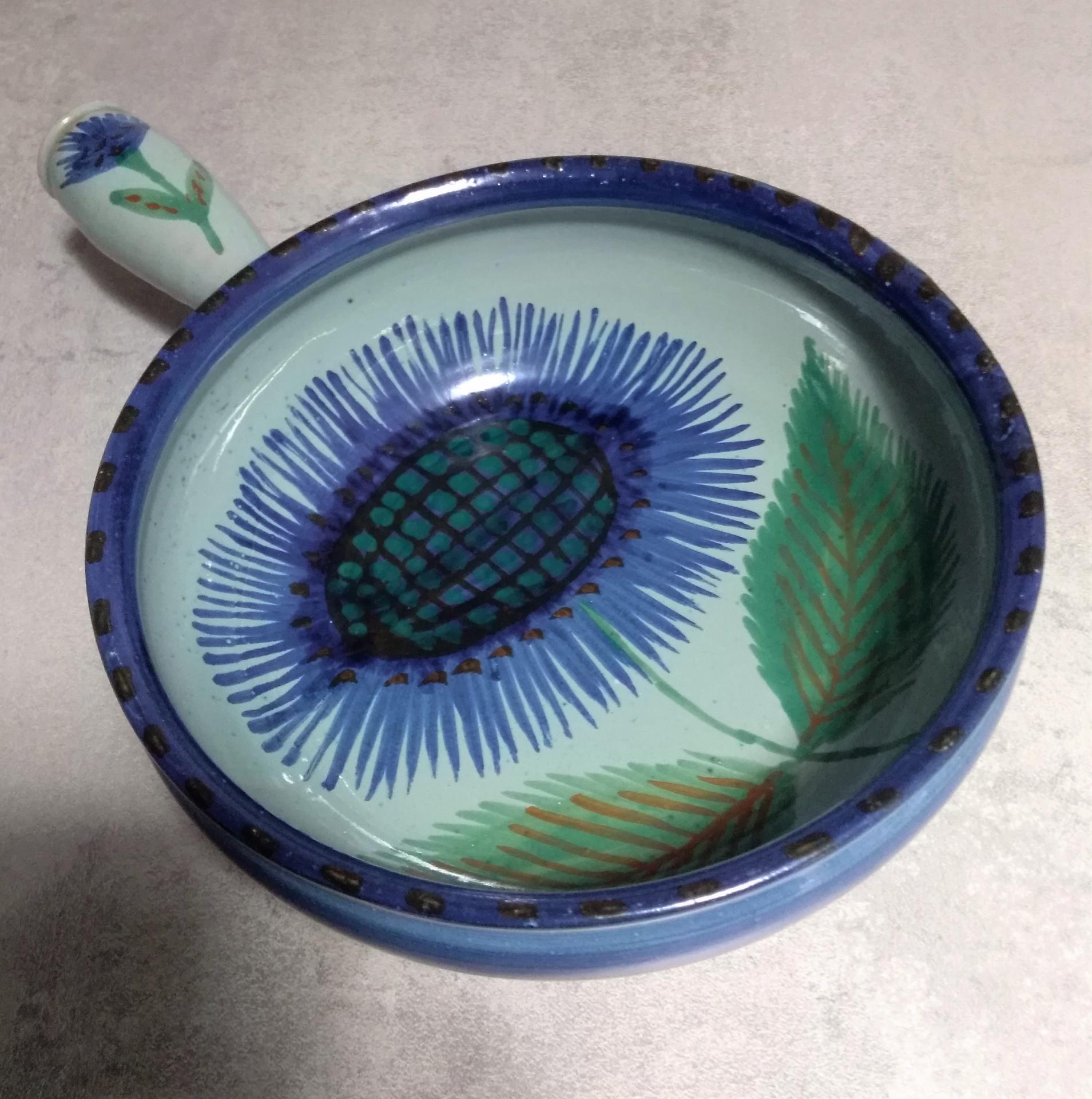 This seventies piece is decorated with a flower in shades of blue and green, which can be found inside.