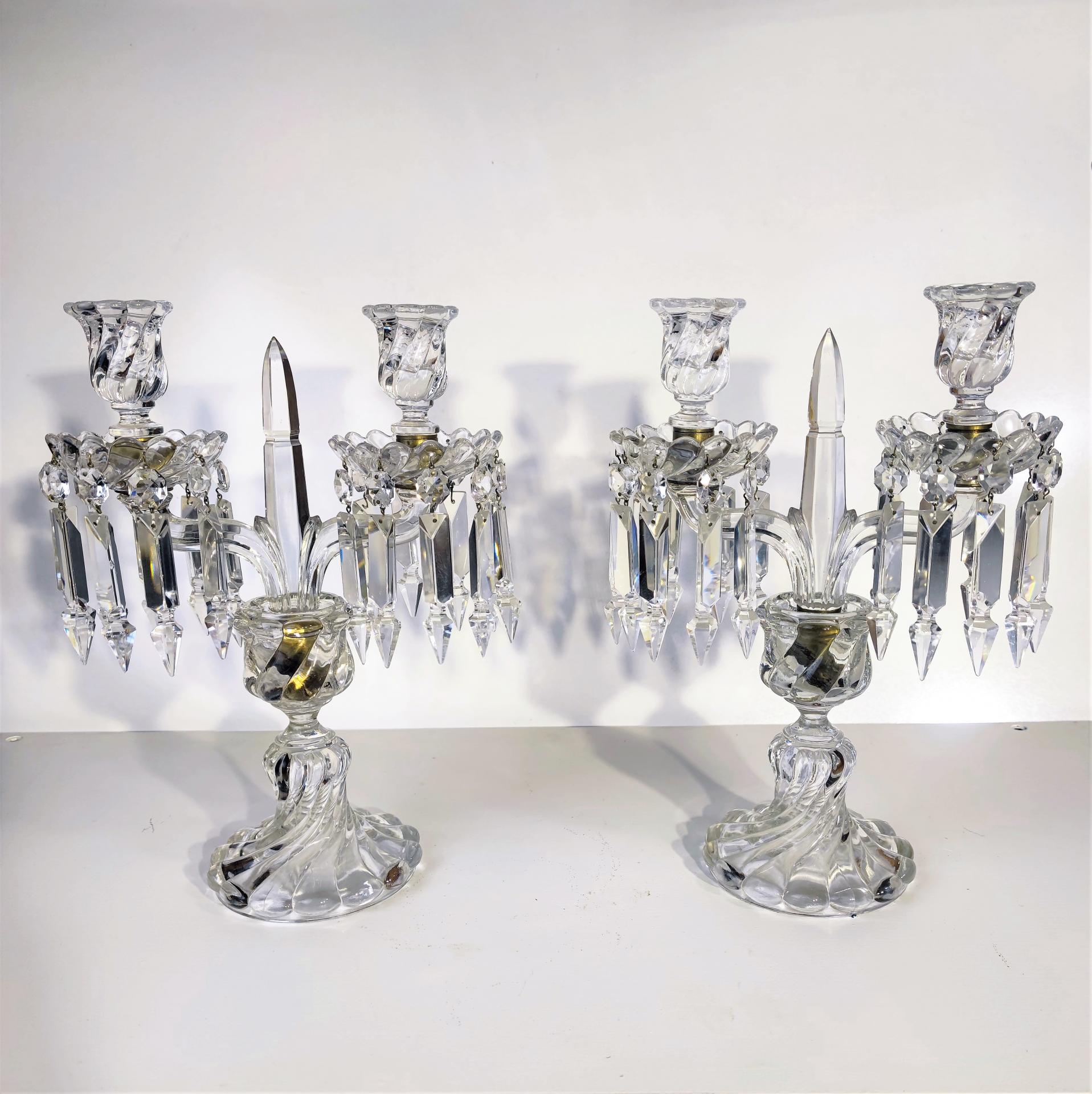 HomeBoutiqueArt décoratif, Chandeliers, Luminaires, Objets d'artPAIRE DE GIRANDOLES  CHANDELIERS estampillé Baccarat Modèle Tors ou Bambou XXème