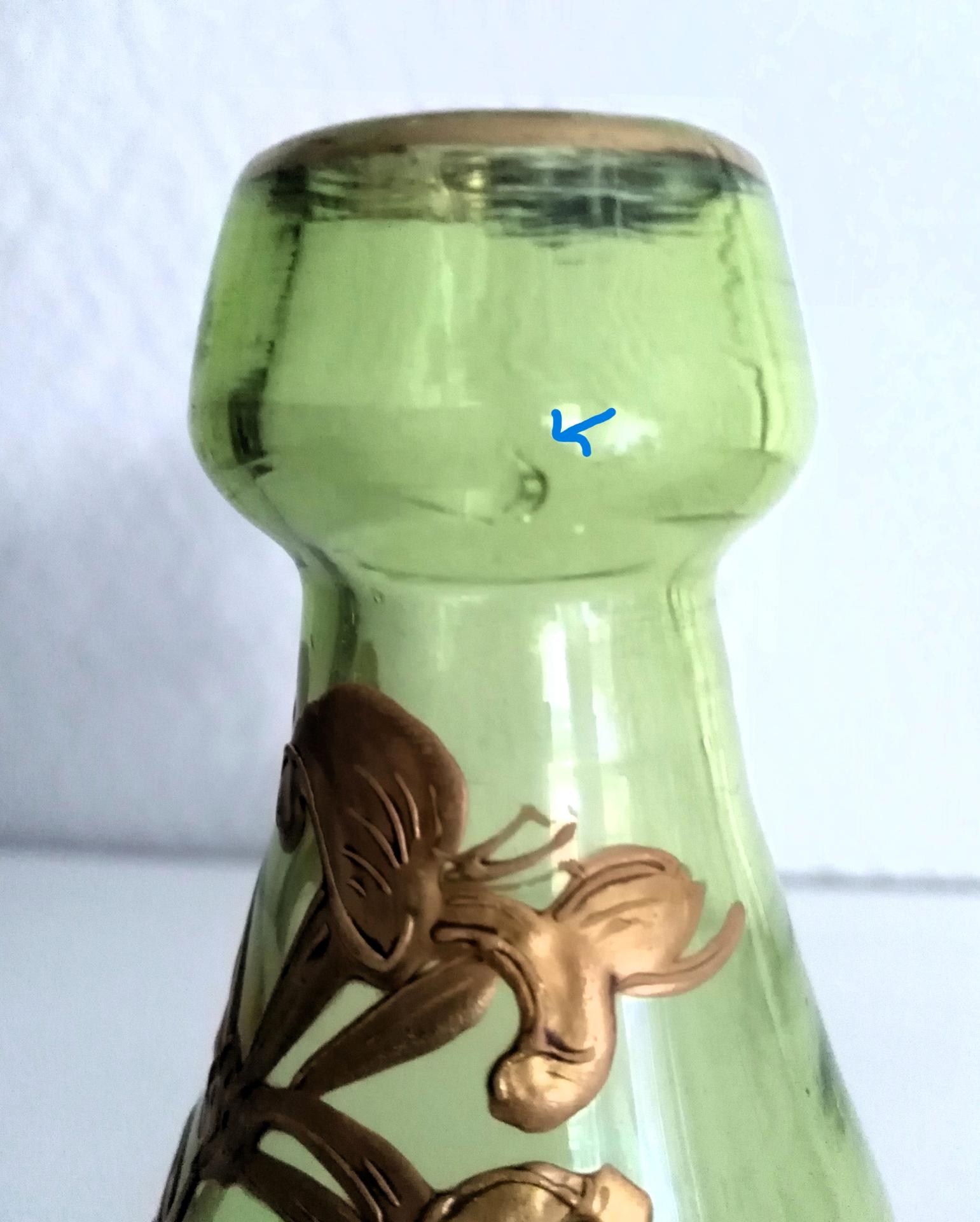 Trés bon état, dorure bien présente, une petite rugosité que l’on sent en passant le doigt à l’intérieur du col, pas de fèle , signalé par la flêche bleue sur photo.