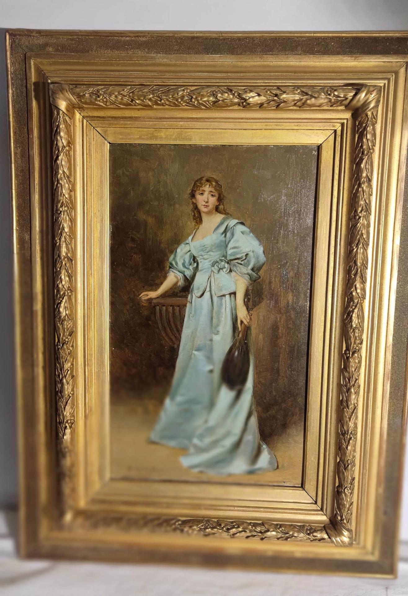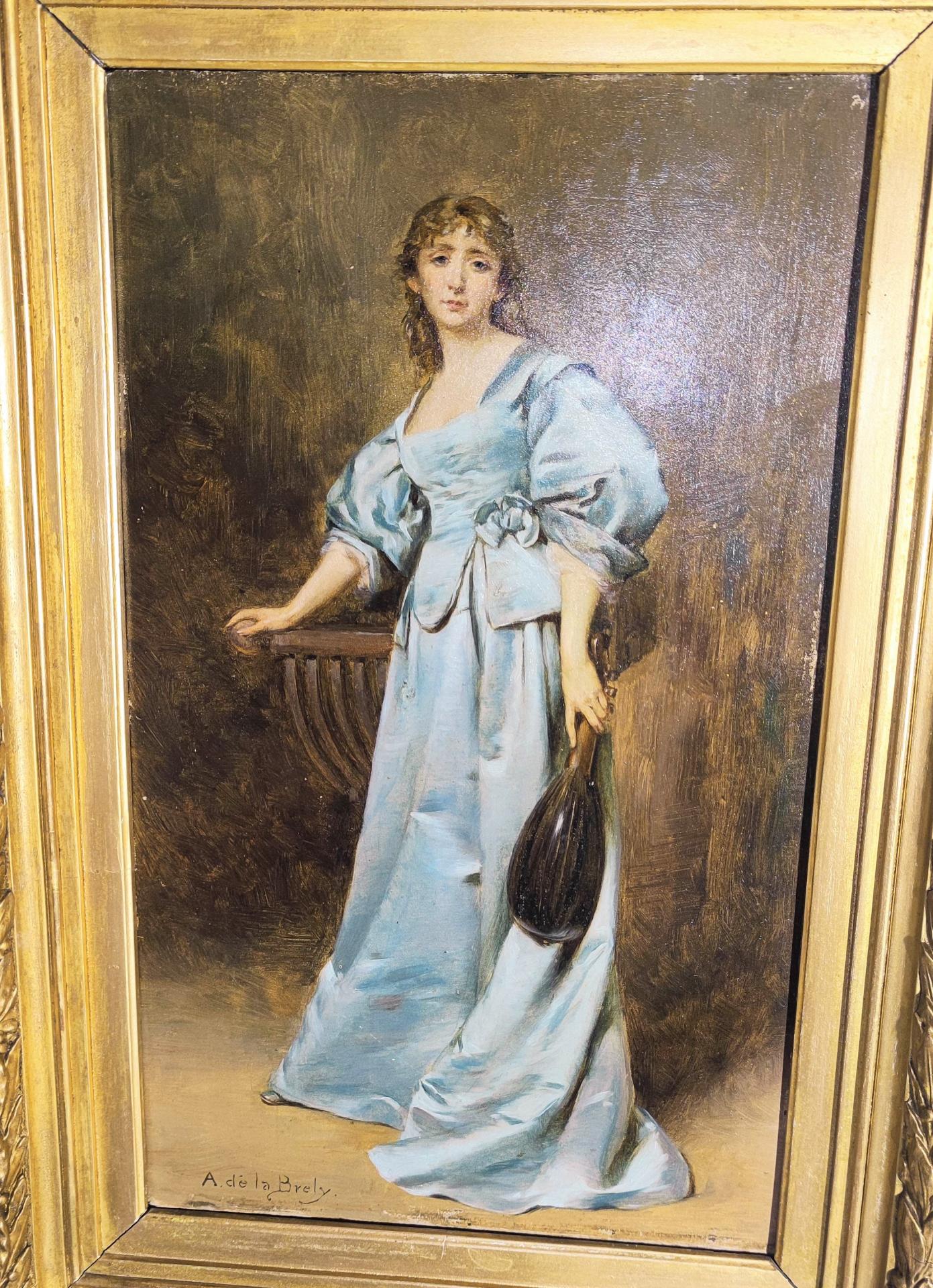 Auguste de Brely « femme à la mandoline » huile sur panneau bois XIX ème