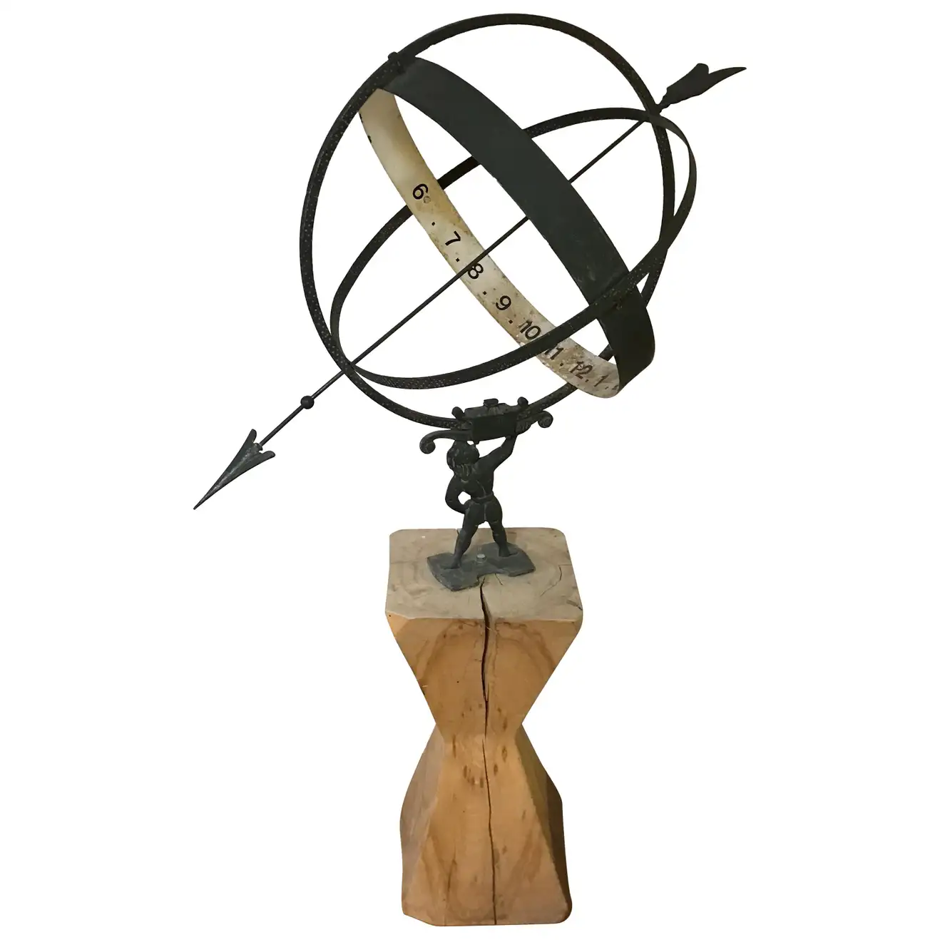 HomeBoutiqueEléments d'architecture, FerronneriesCadran solaire Armillaire suédois d’Atlas monté sur un socle en bois