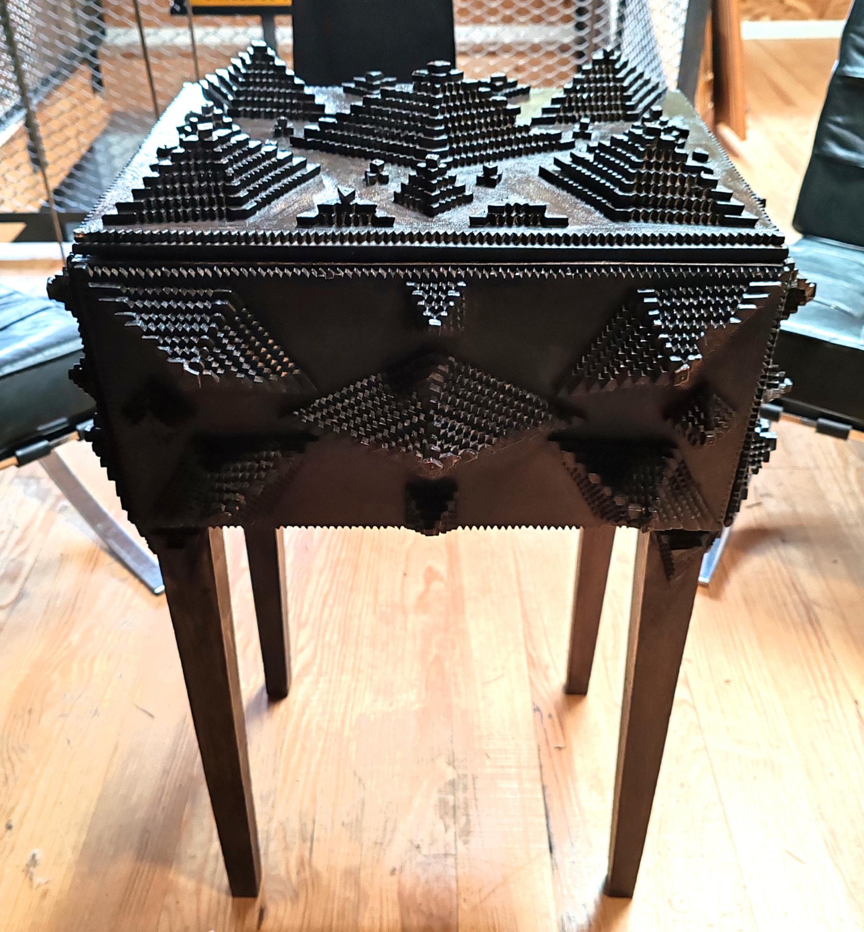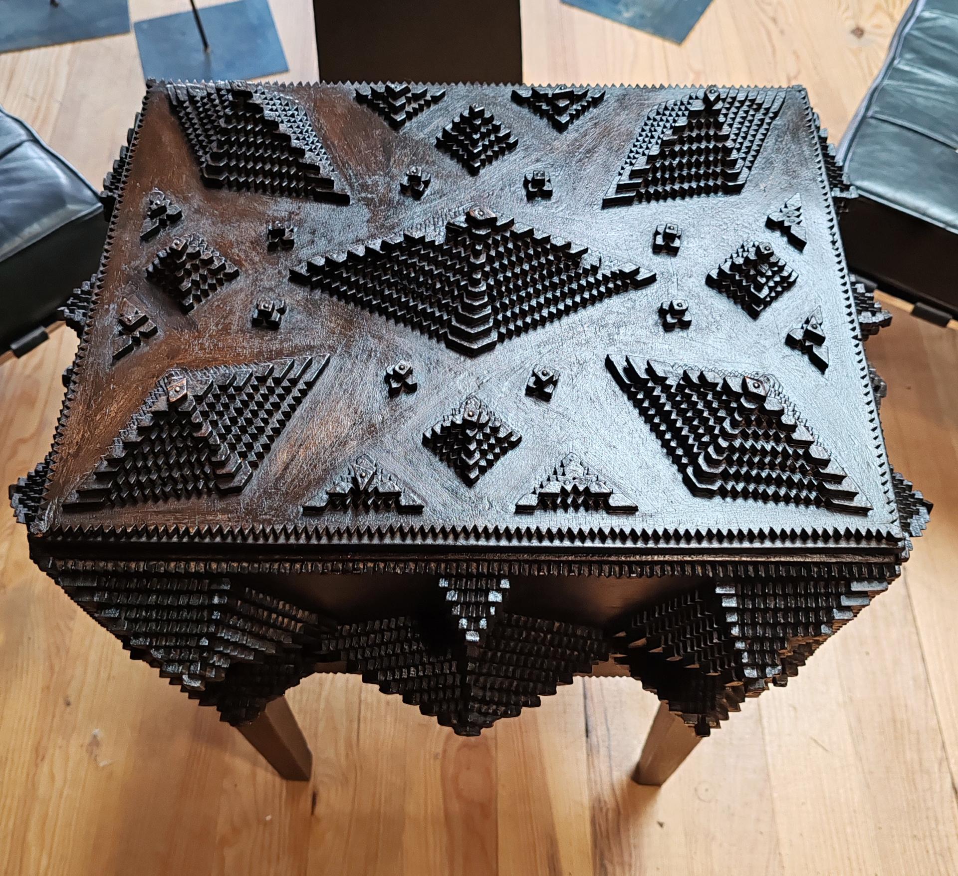 Il s’agit d’une forme d’art que l’on retrouve dans le monde entier. On le considère comme de l’art naïf ou du « folk art ». Il s’agit de petits morceaux de bois, principalement à partir de boîtes de cigares, de caisses de transport ou de caisses de fruits jetées, placés en couche dont les bords étaient entaillés et superposés pour fabriquer une variété d’objets domestiques.