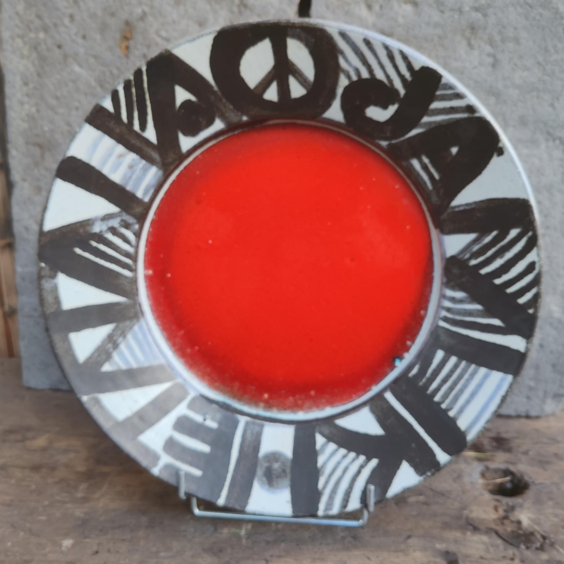This bowl is a unique piece produced in the 60s/70s and comes from a private collection. You can find the hippie symbol of peace on the top of the cup. The color contrast between the heart of the room and the perimeter makes it a decorative object of great beauty.