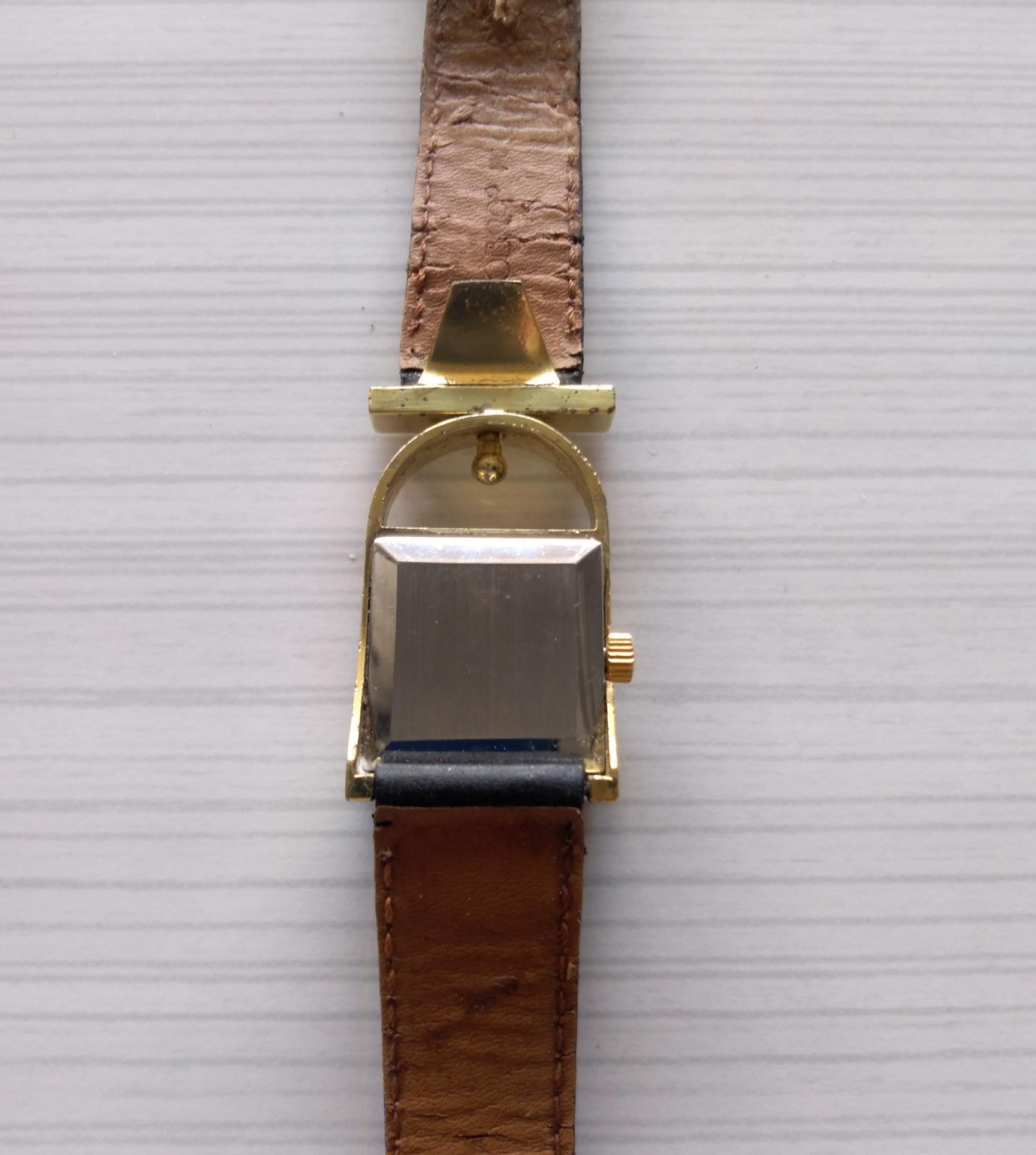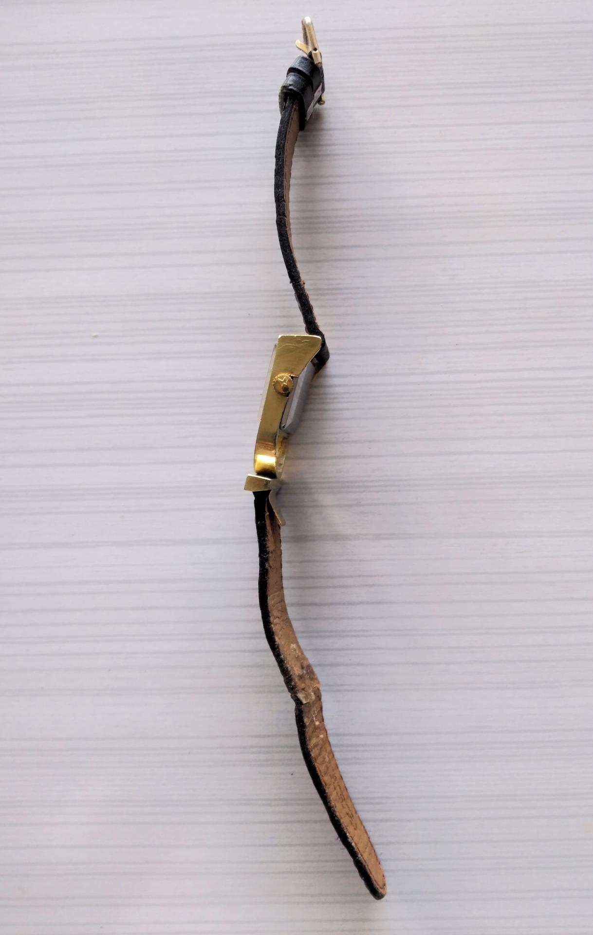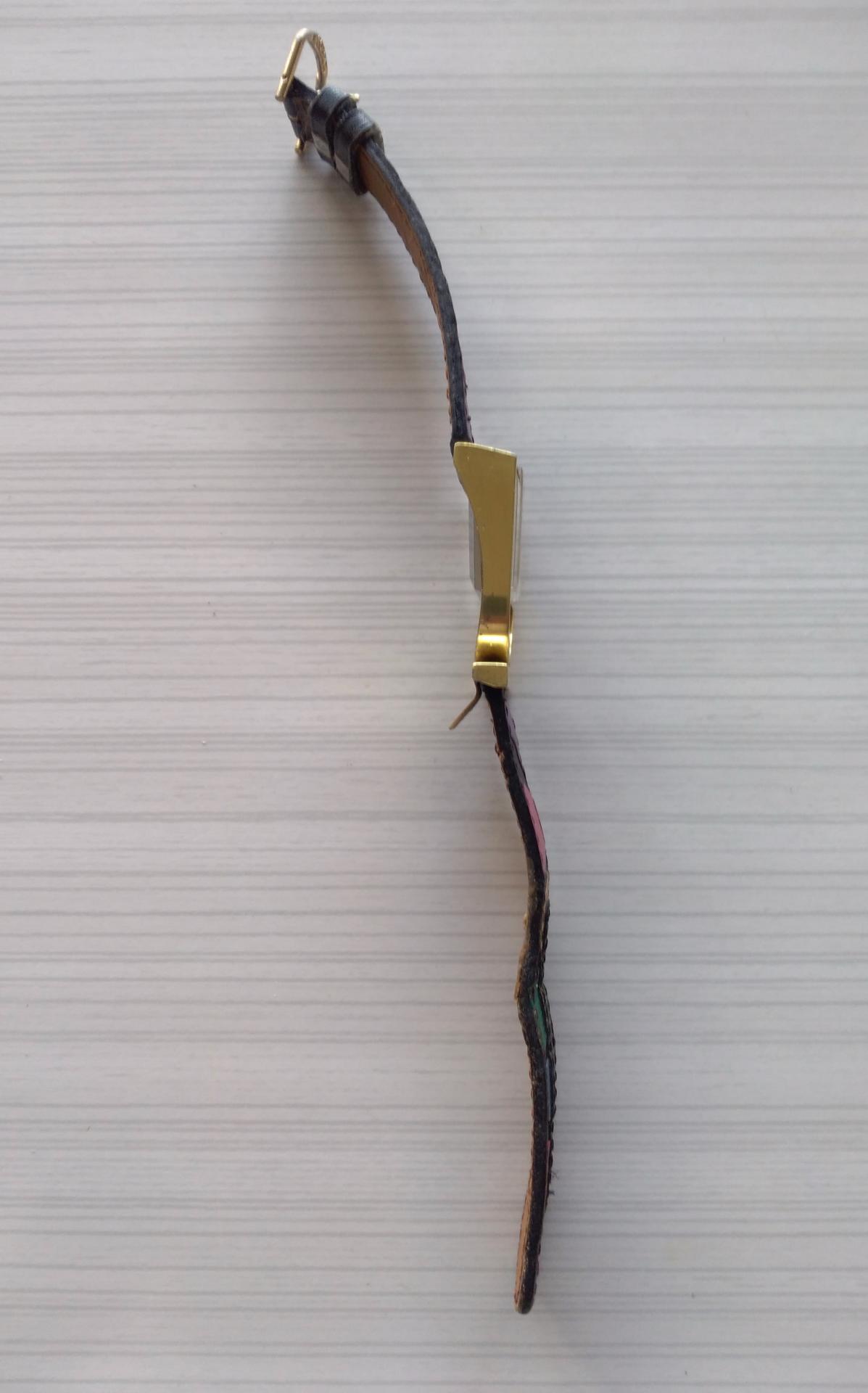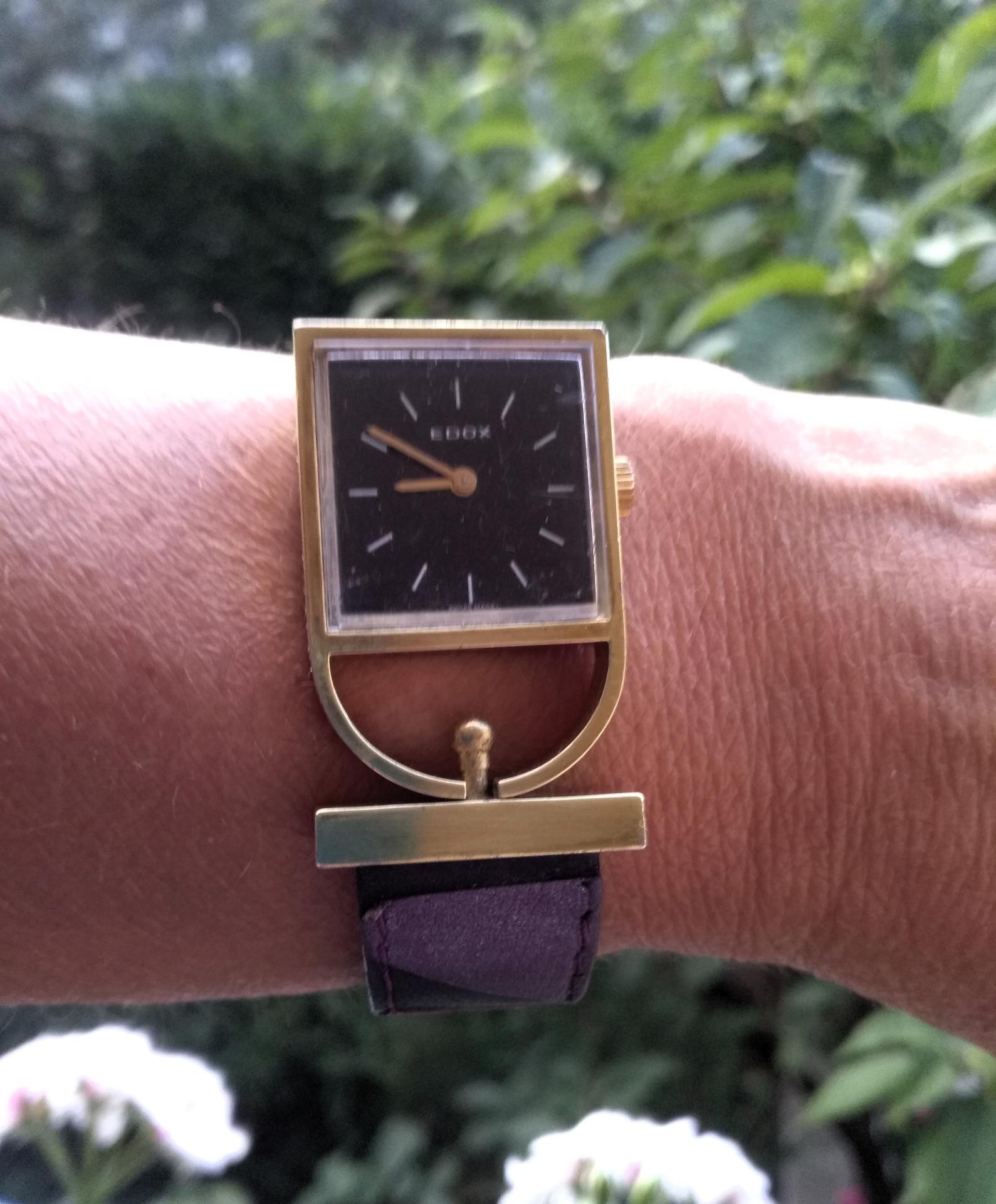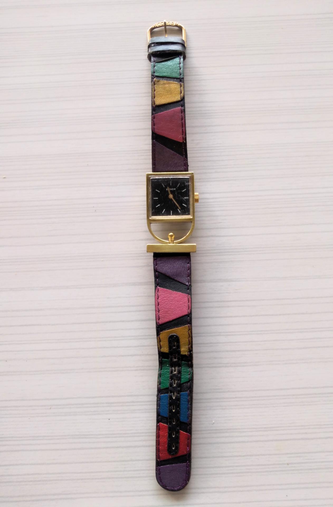 EDOX Montre bracelet femme en plaqué or et bracelet cuir multicolore Années 1970-1980