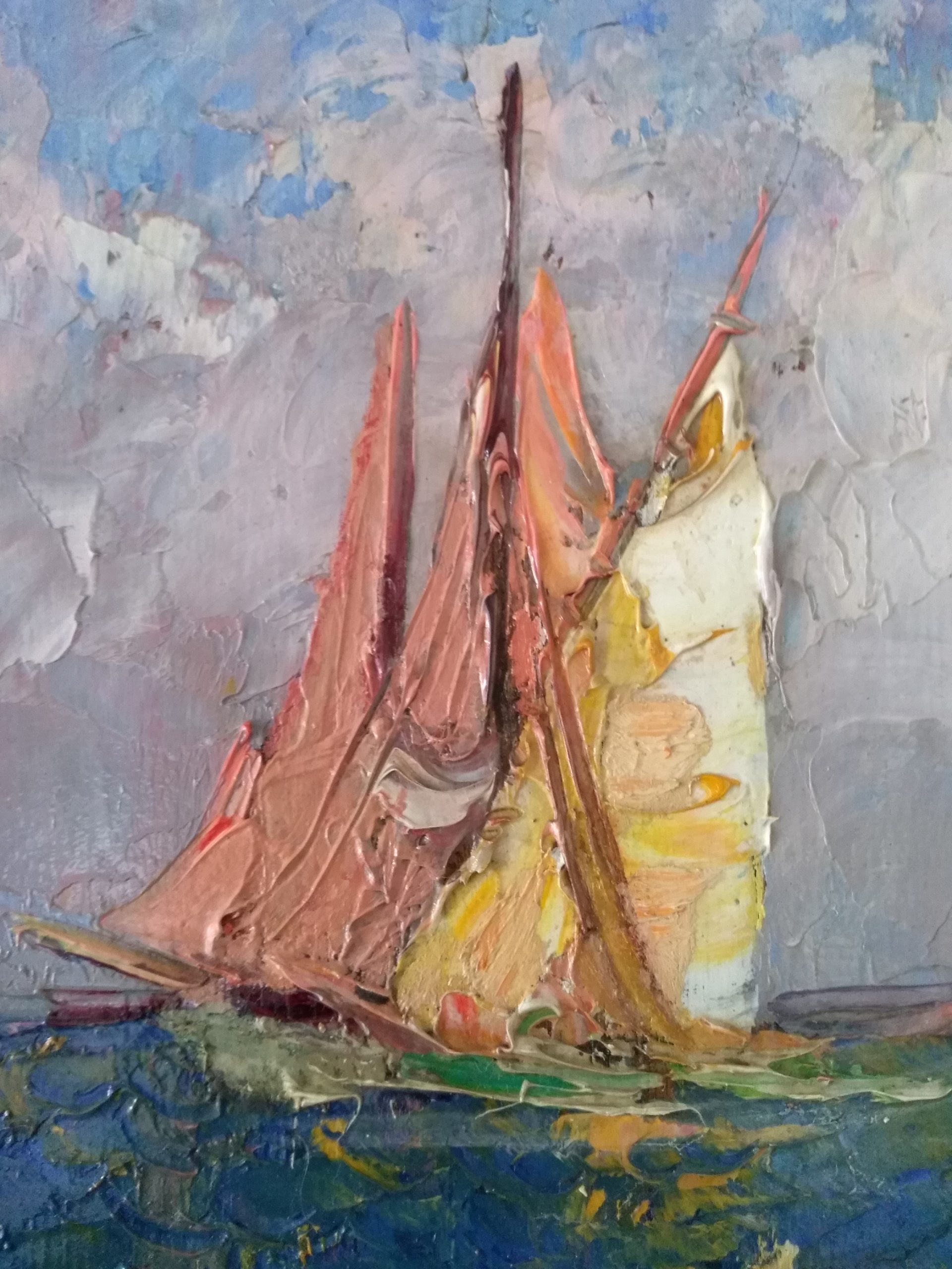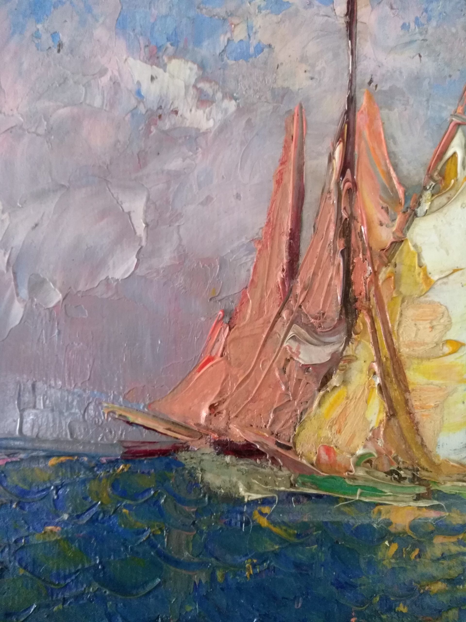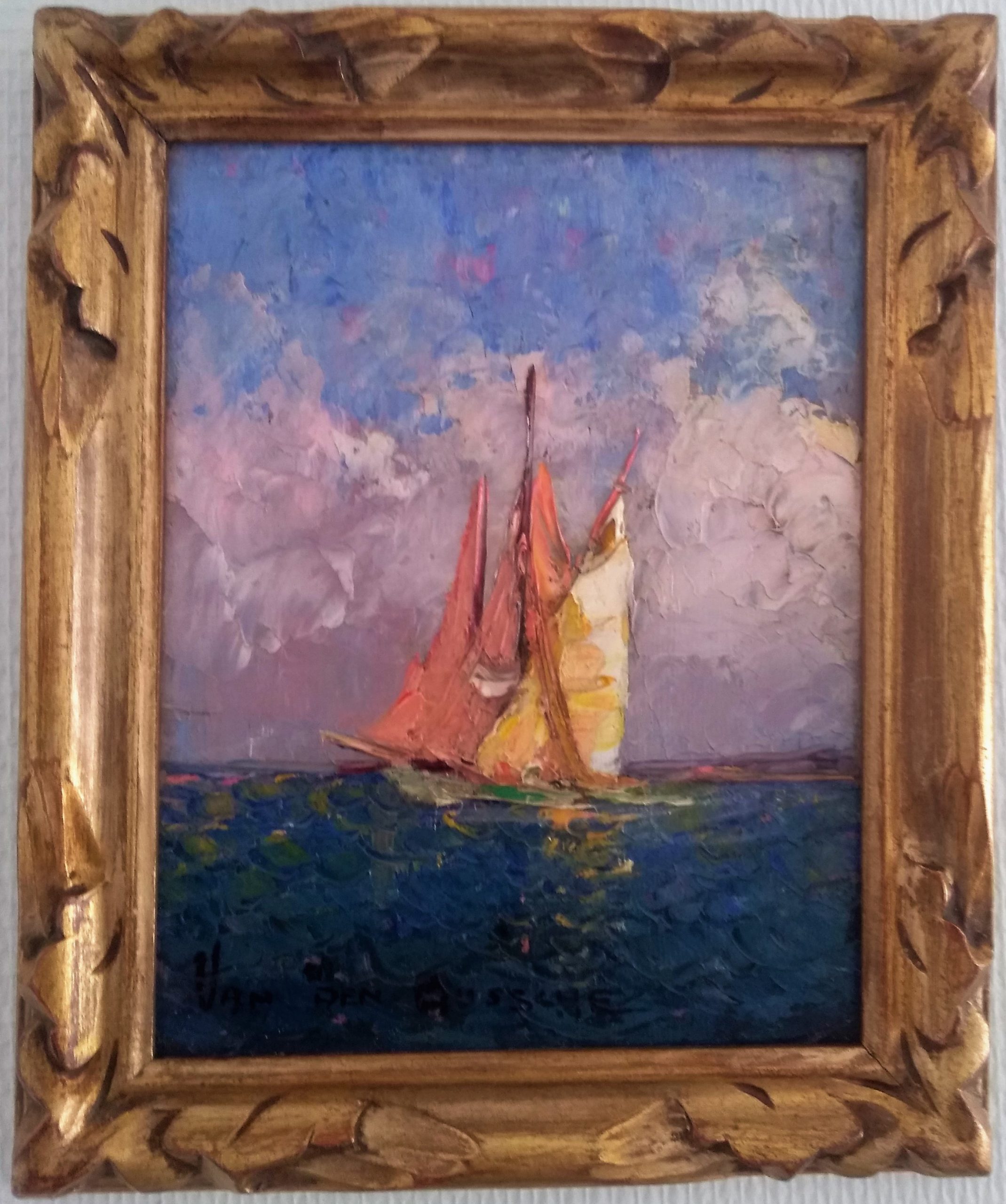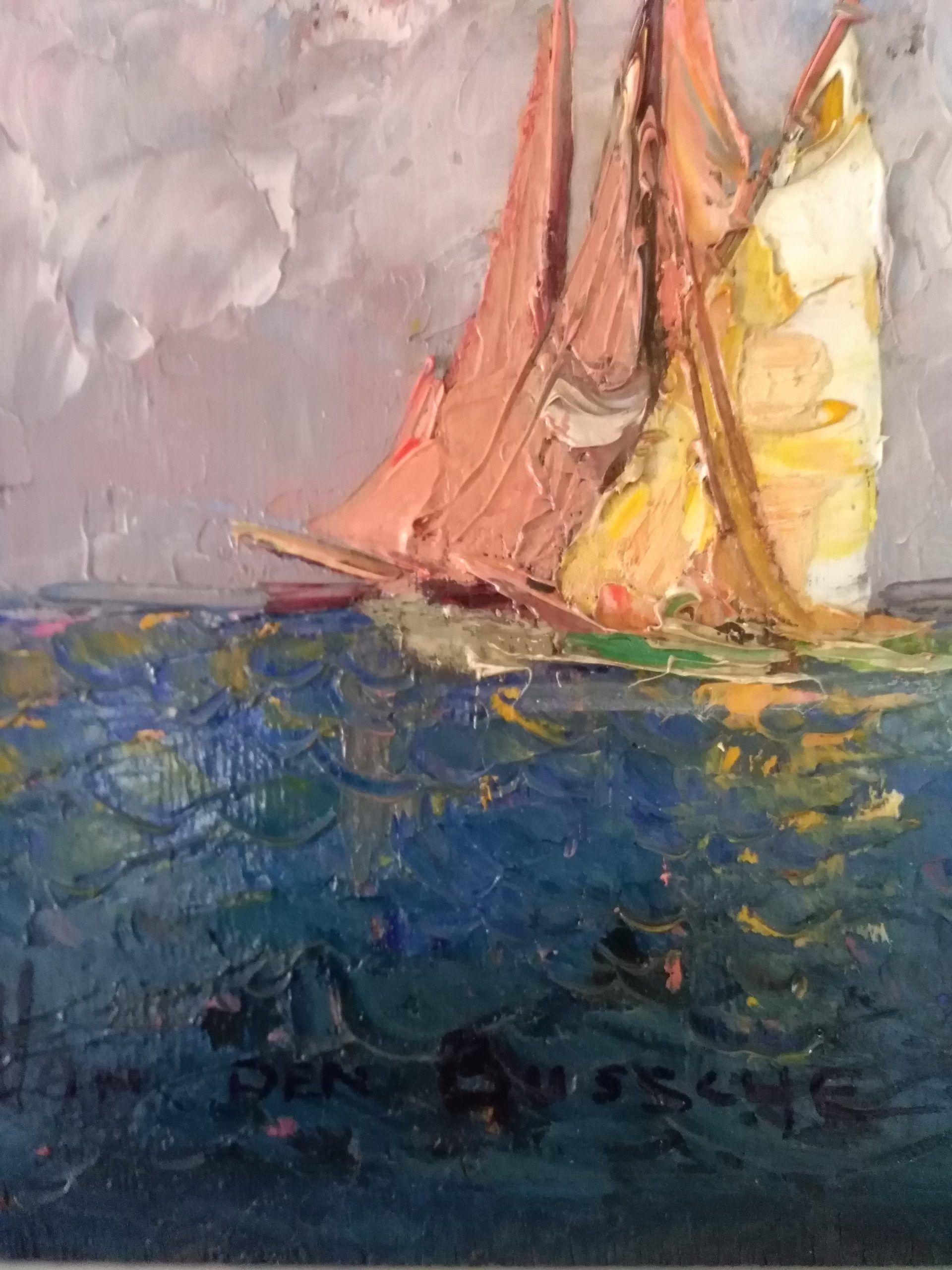 Fernand Van Den Bussche « Le Voilier » Huile sur panneau bois XX ème