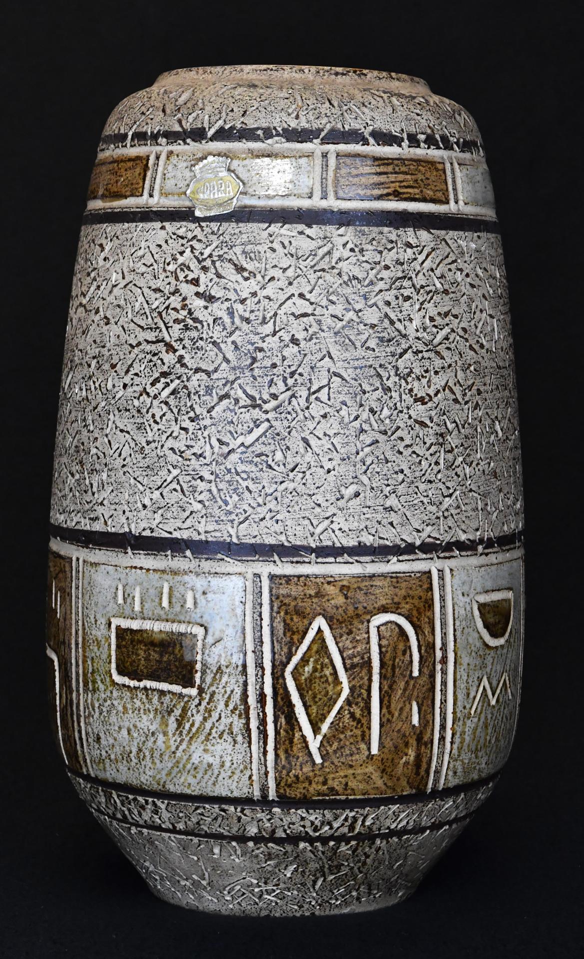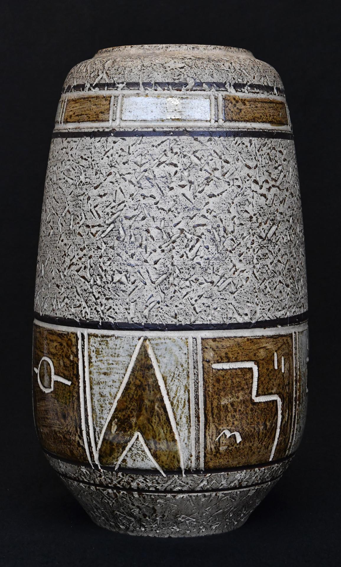 Grand vase en céramique vintage Spara technique en partie sgraffite à motifs géométriques Année 60