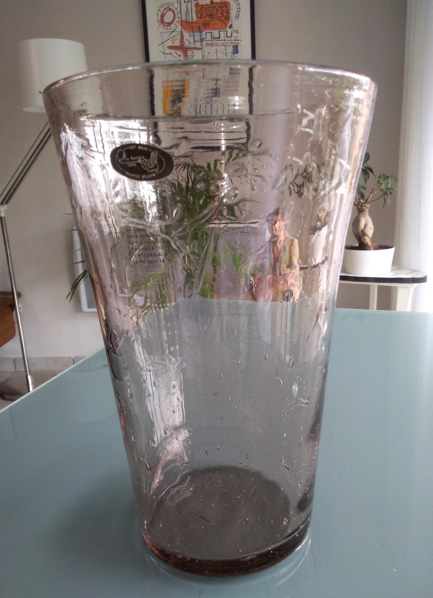 XXème siecle, Étiquette sur le vase: verrerie de la Rochère, soufflé à la bouche, belle épaisseur qui lui confère solidité.