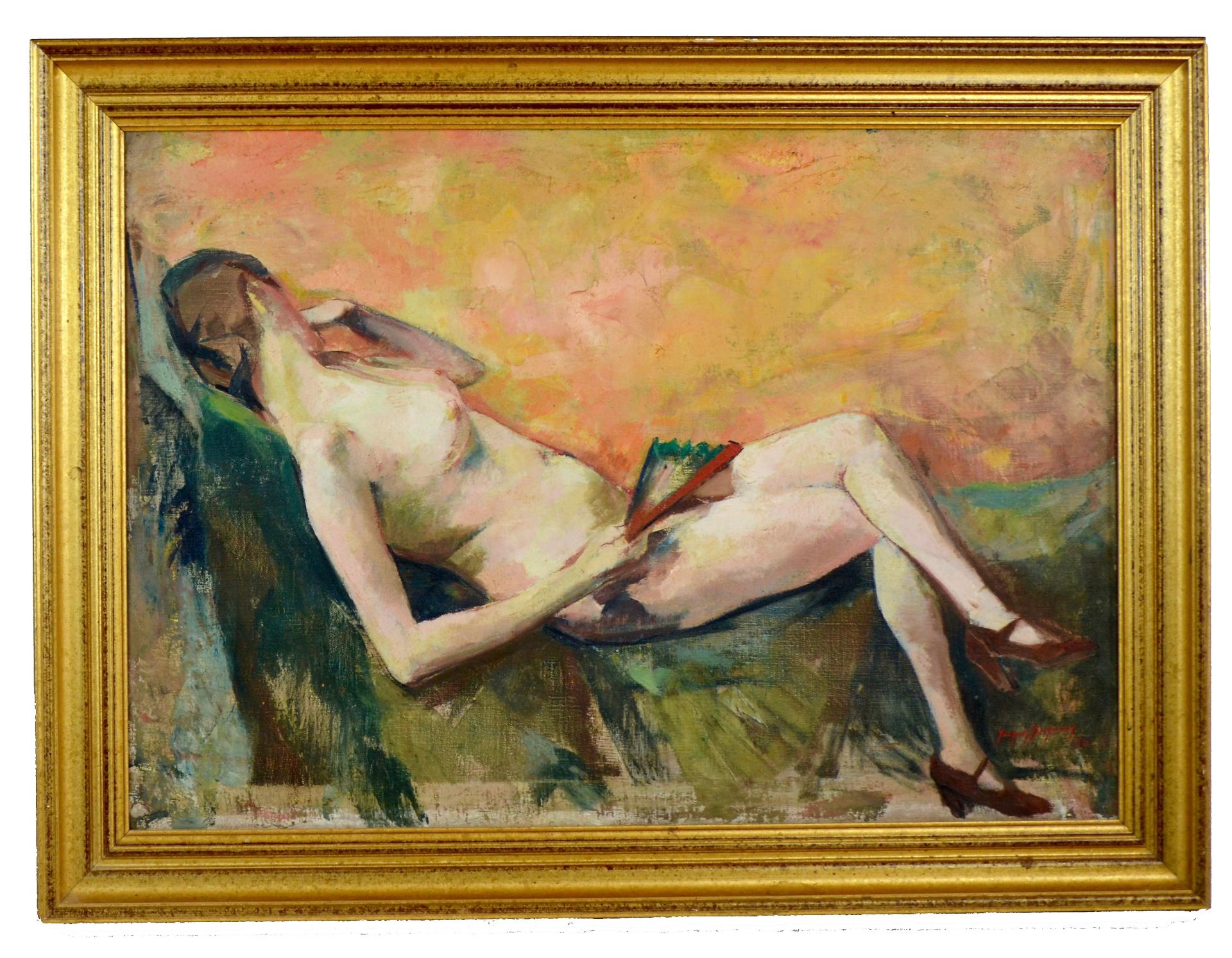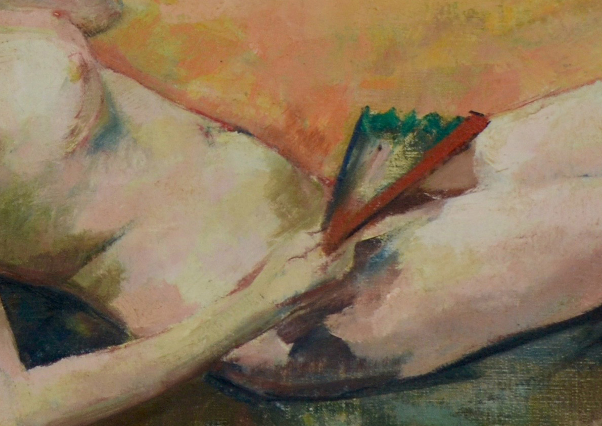 Bergmans -Oil on canvas, « Nude lying on the fan », Expert: Cabinet Maréchaux.
