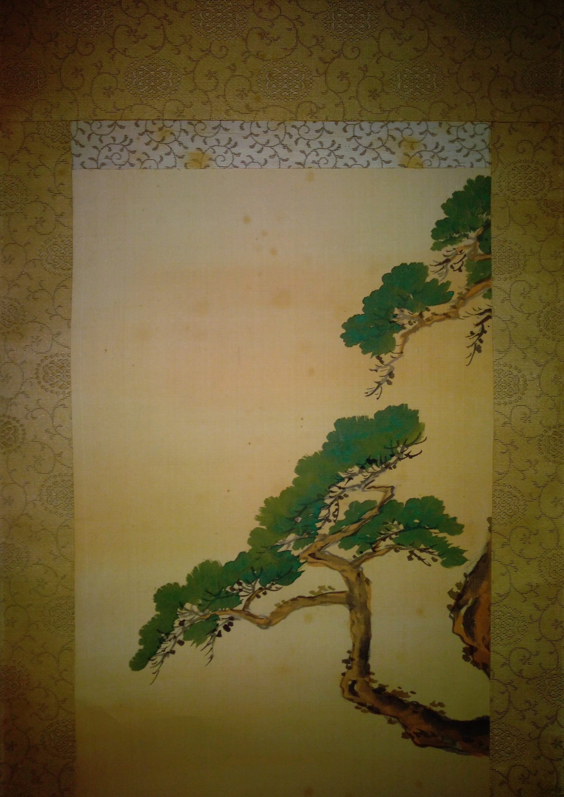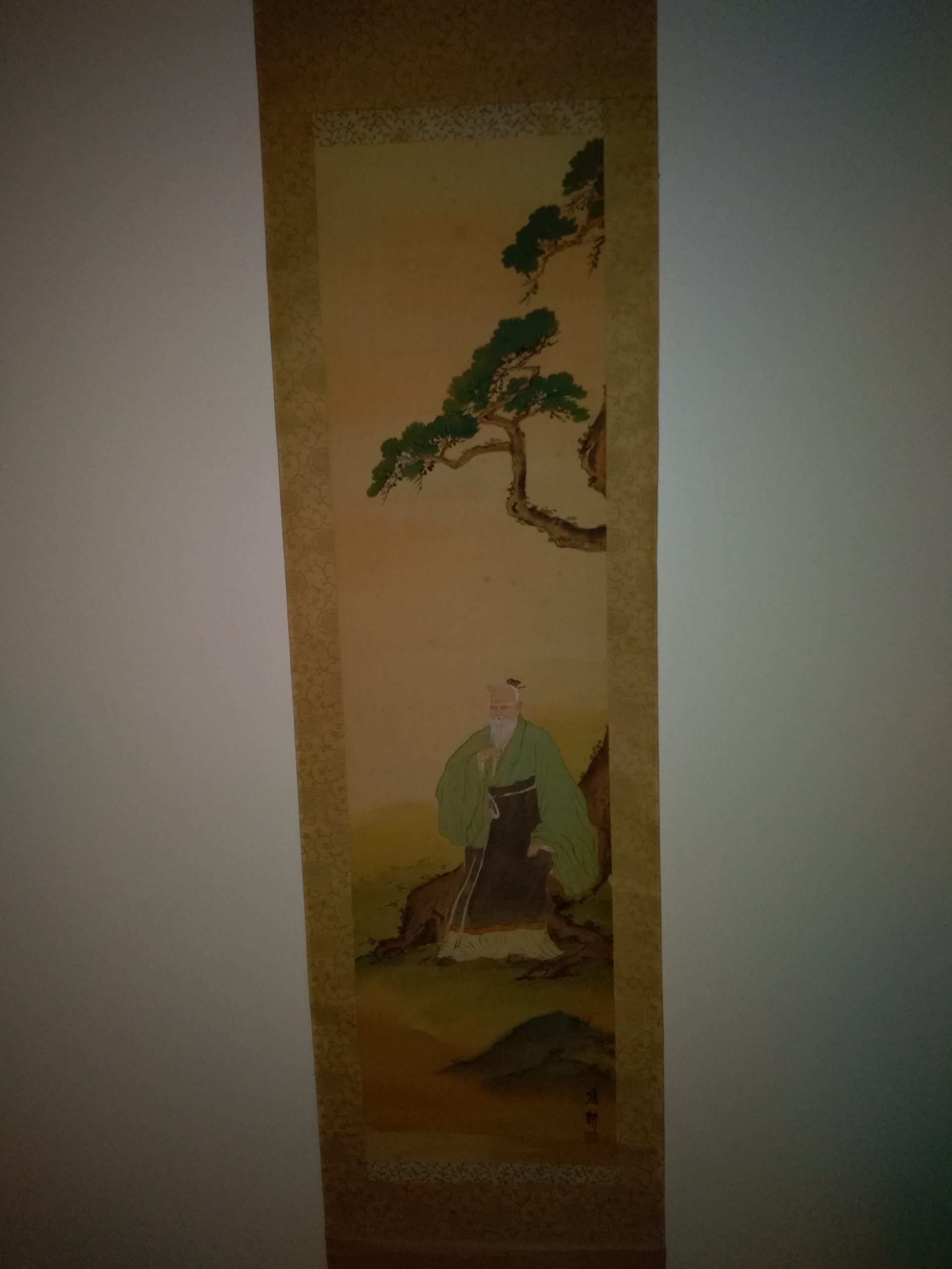 Il s’agit d’un luxueux rouleau en papier de riz ou en soie, 3 à 4 fois plus haut que large, accroché verticalement sur le mur du tokonoma présent dans chaque demeure traditionnelle japonaise et sur lequel apparaissent des calligraphies ou des peintures.
