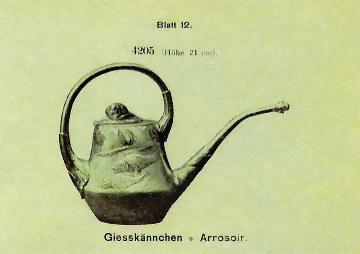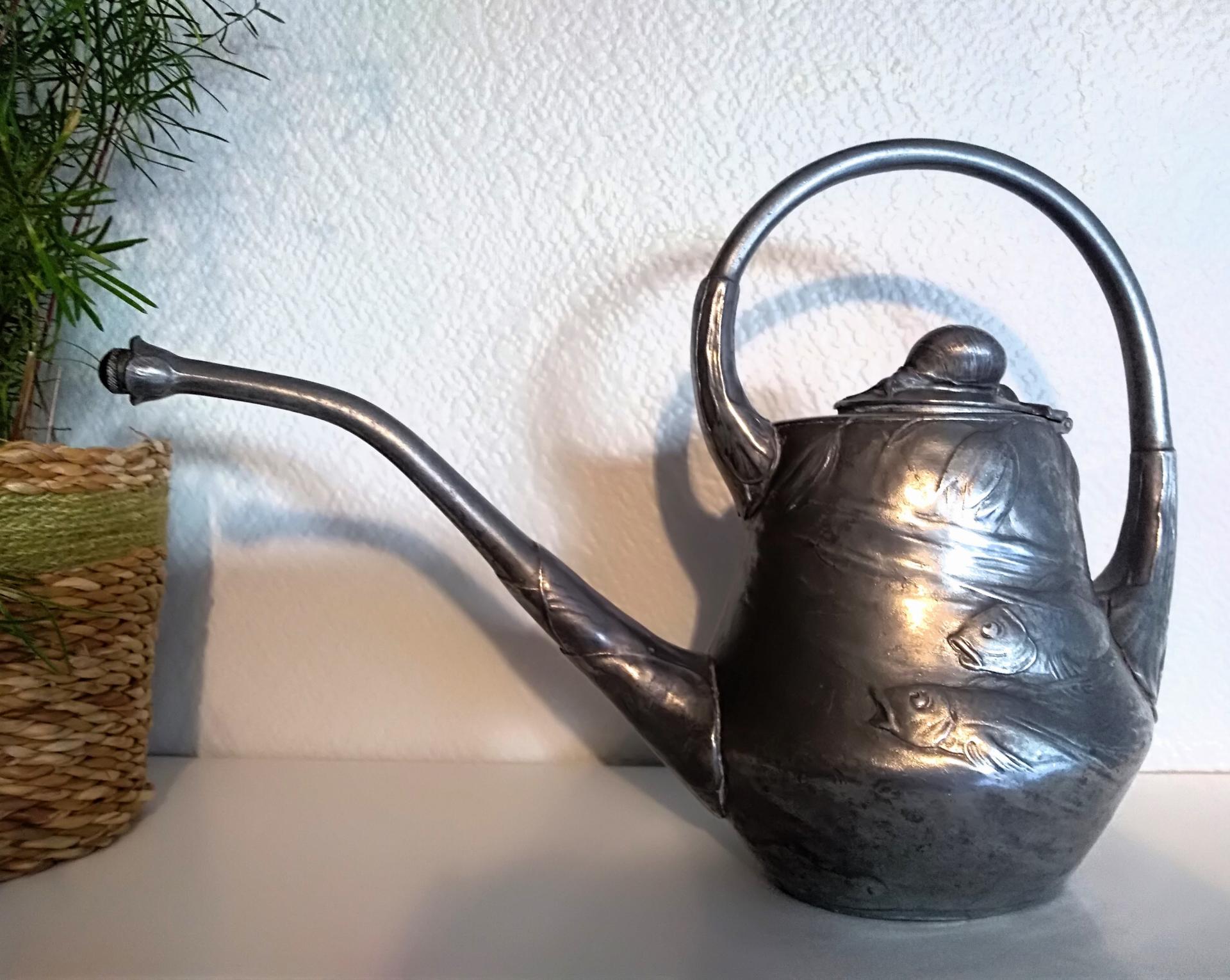 Watering can for orchids, circa 1897 in Art Nouveau pewter « Kayserzinn » by Hugo Leven,