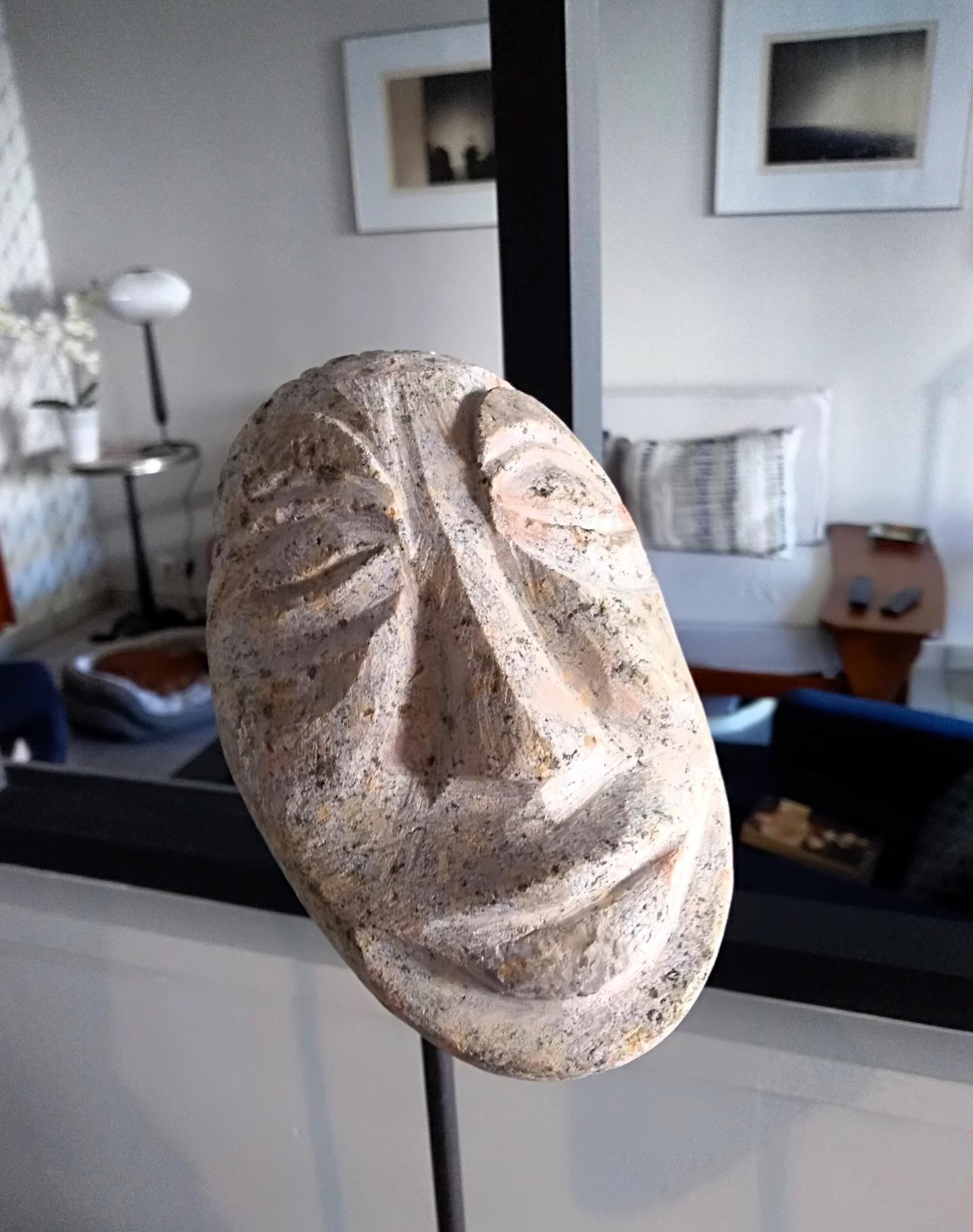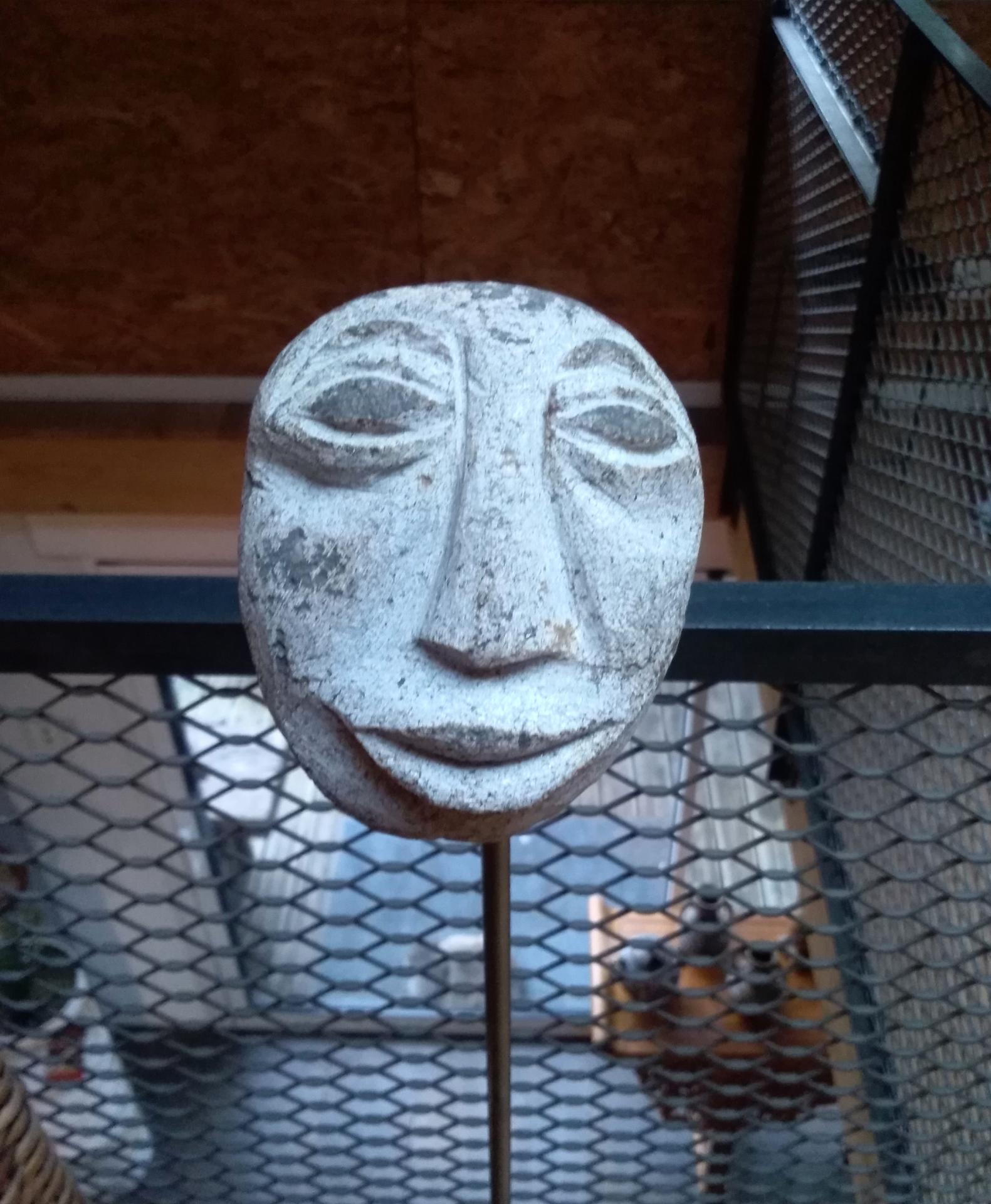 HomeBoutiqueMarbre et pierre, SculpturesLaurent Sarpedon Sculptures galets taillés en forme de visages sur tiges métalliques XX ème