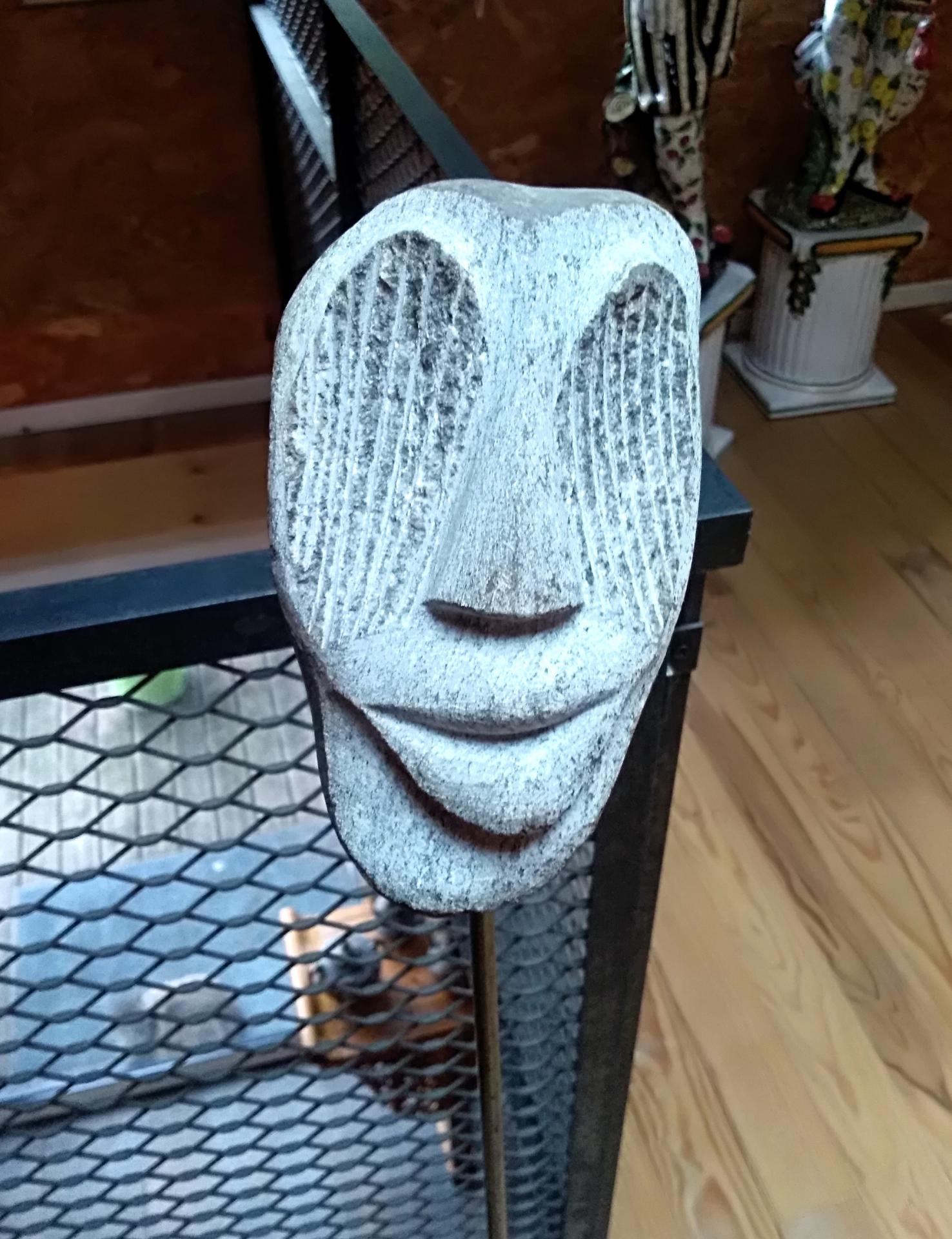Laurent Sarpedon Sculptures galets taillés en forme de visages sur tiges métalliques