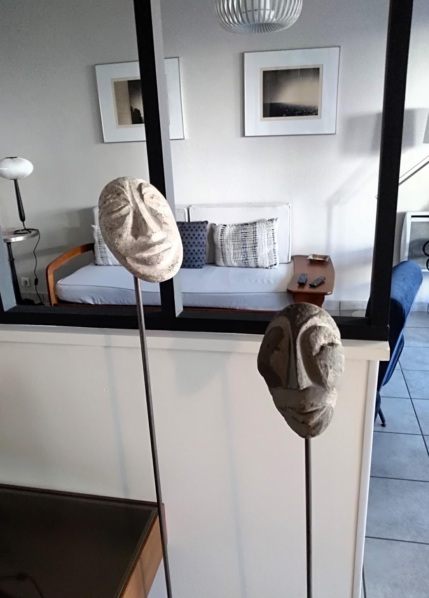 « Je ne laisse pas le hasard tout faire, ce sont des symboles, explique l’artiste. Je les ai trouvés dans une rivière et ils étaient tous différents, avec des reliefs différents. Ce sont les esprits de la vie. »