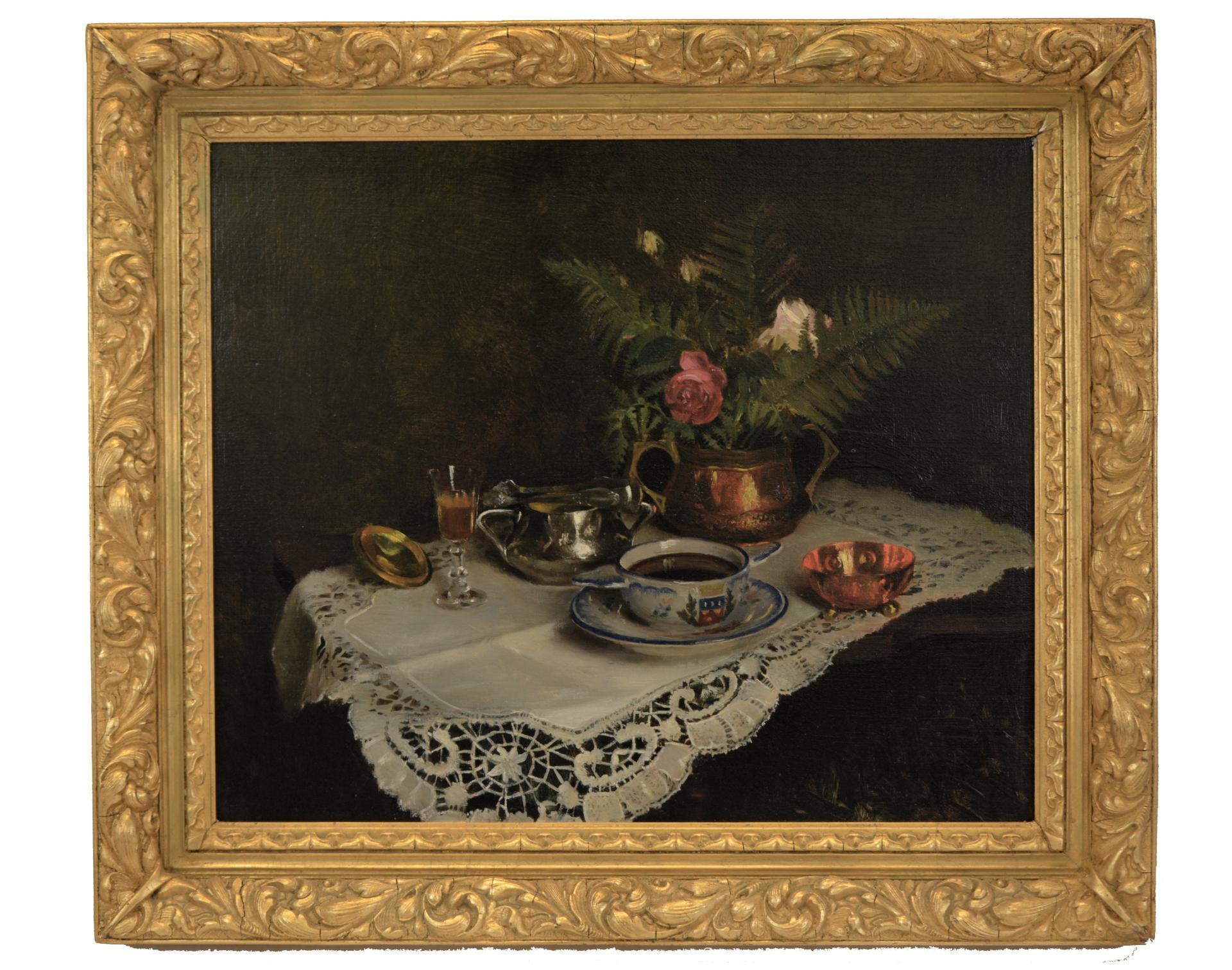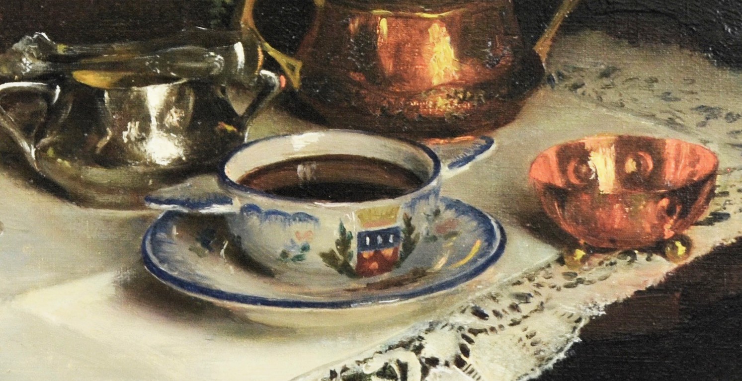 Historique : Louis Joseph CAPMAN est né en Indonésie à Siram en 1903. Elève de Bonnat, il est inscrit à l’École Française de Paris et expose aux artistes Français de Paris. Possibilité de joindre le bol du tableau. (faïence de Sarreguemines)