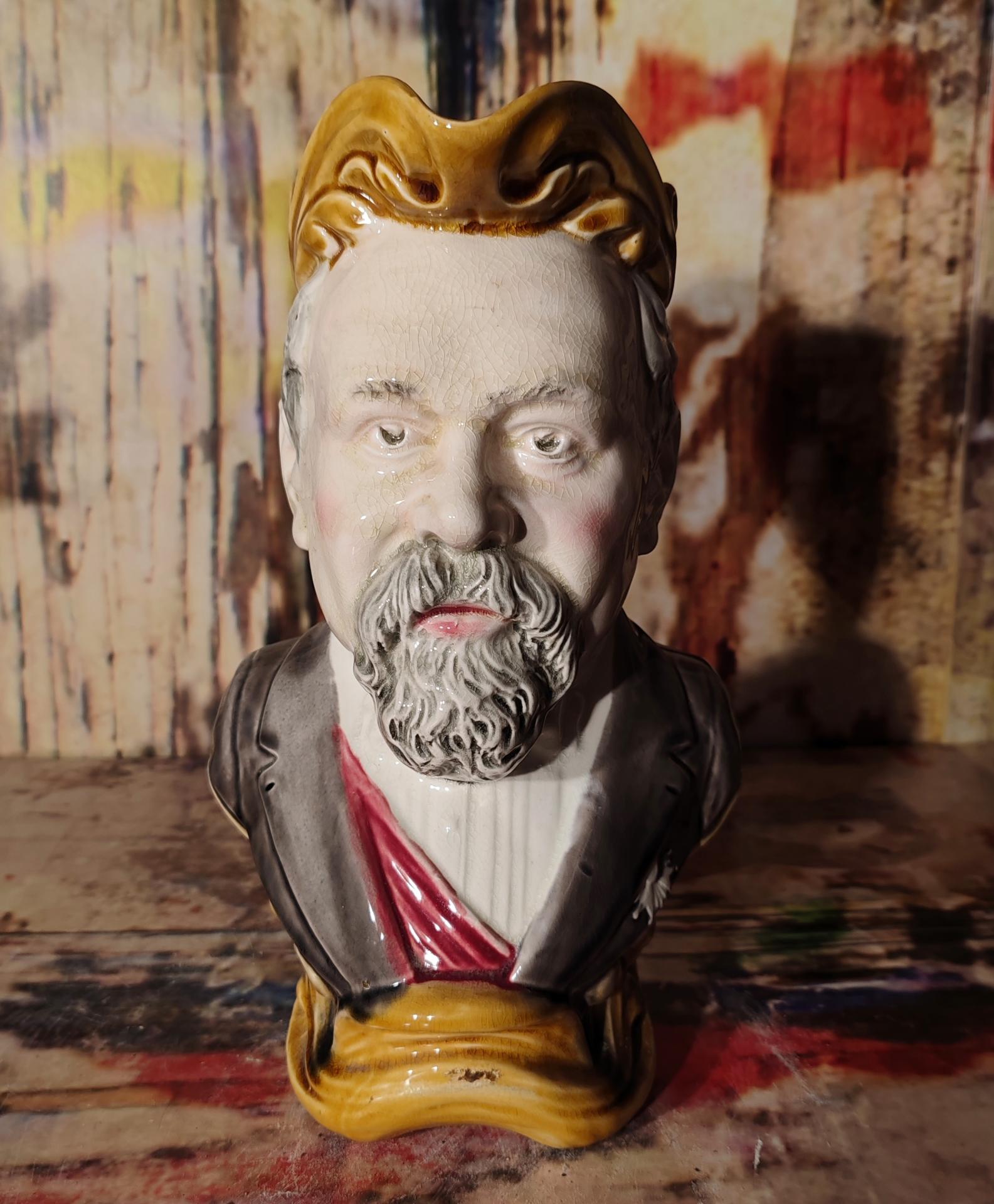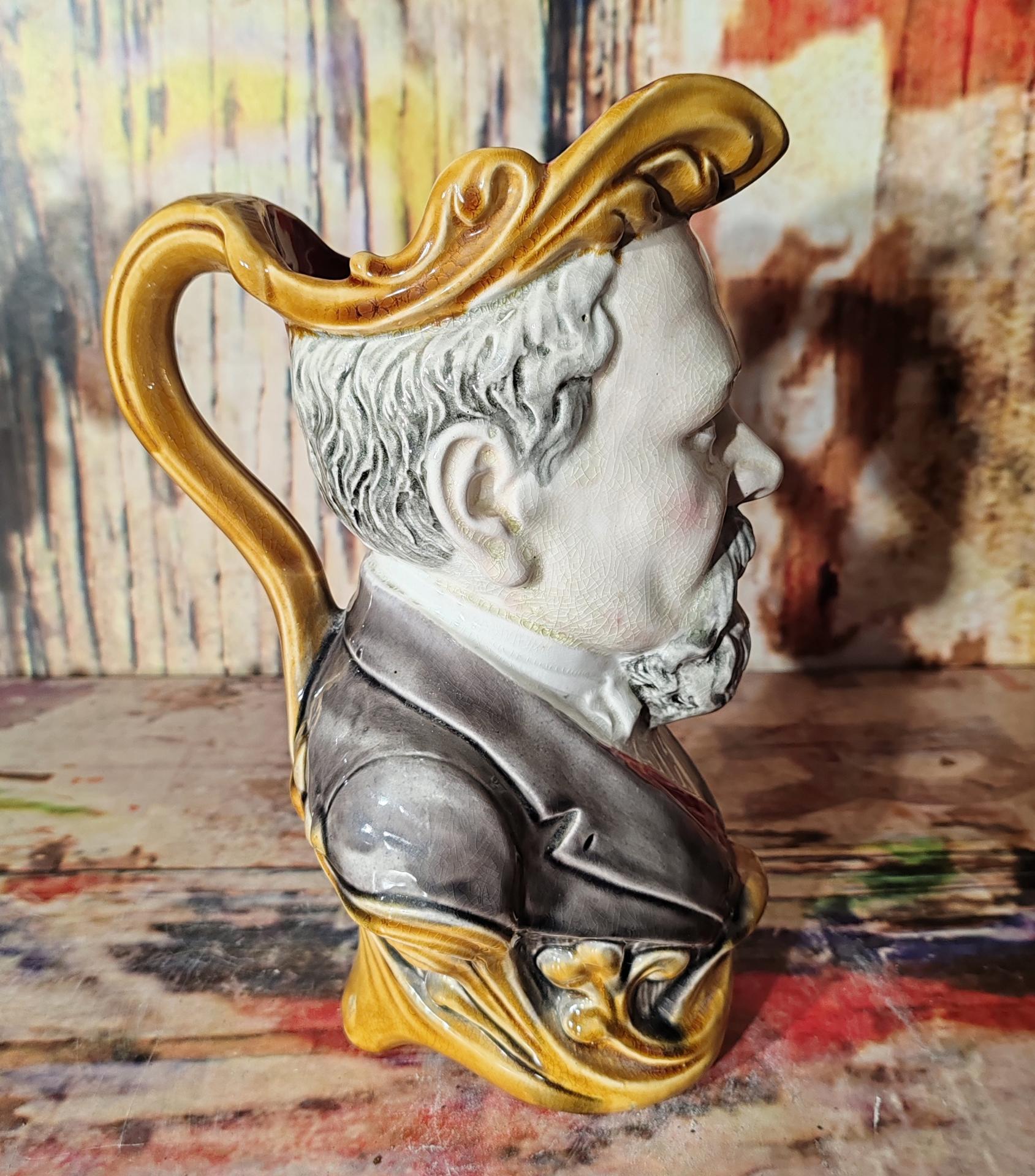 Pichet barbotine de la faïencerie d’Onnaing représentant le Président Raymond Poincaré, estampillé n°816.