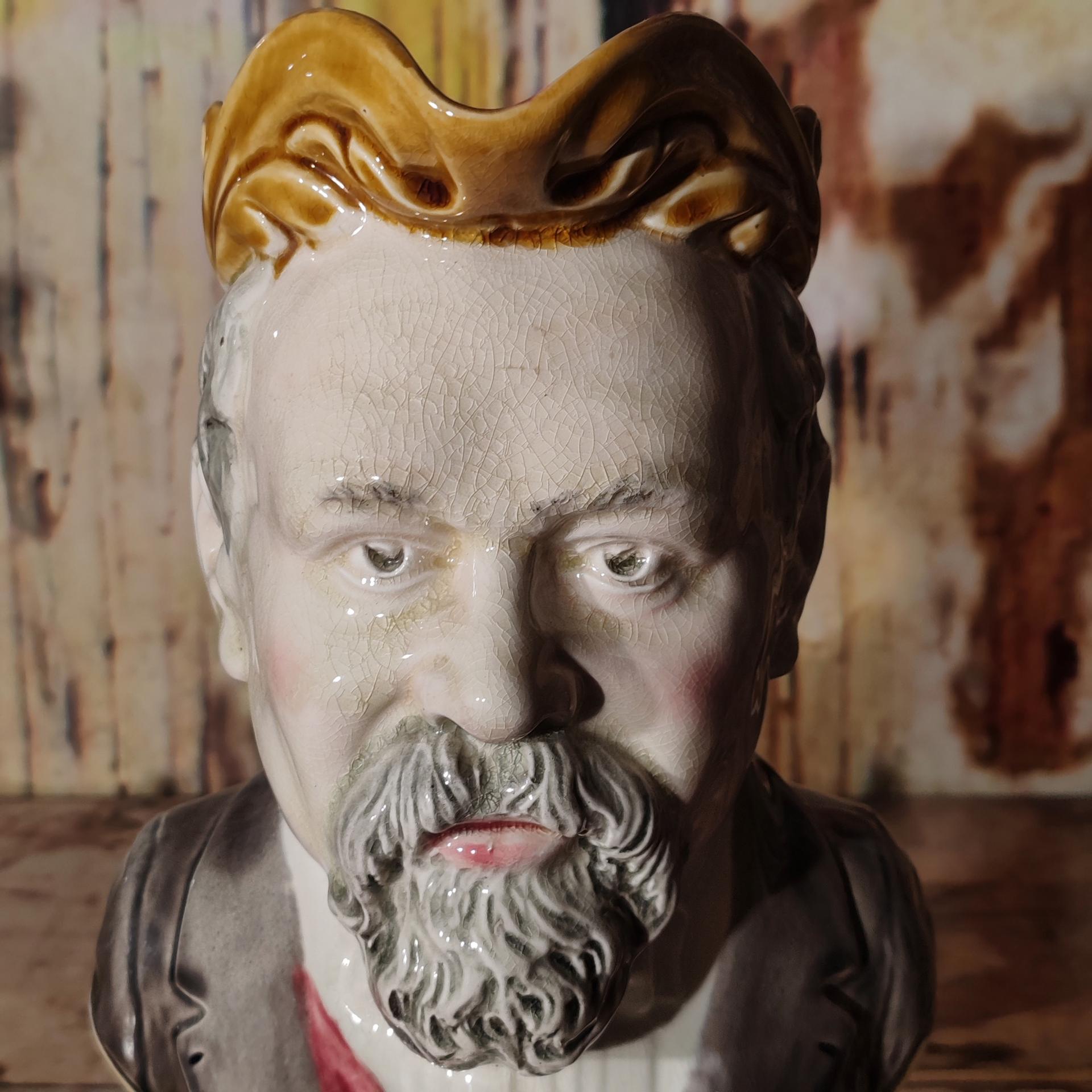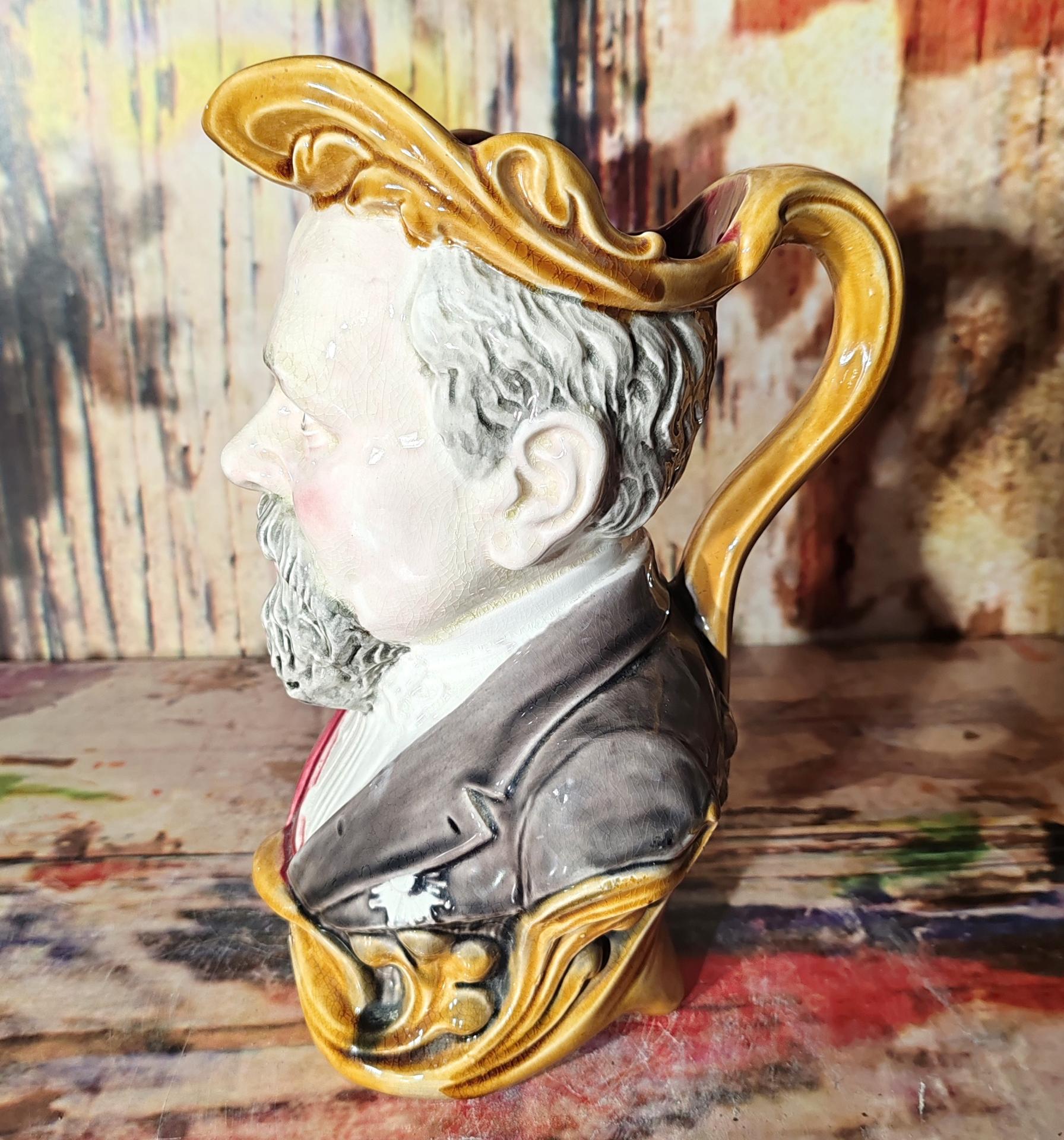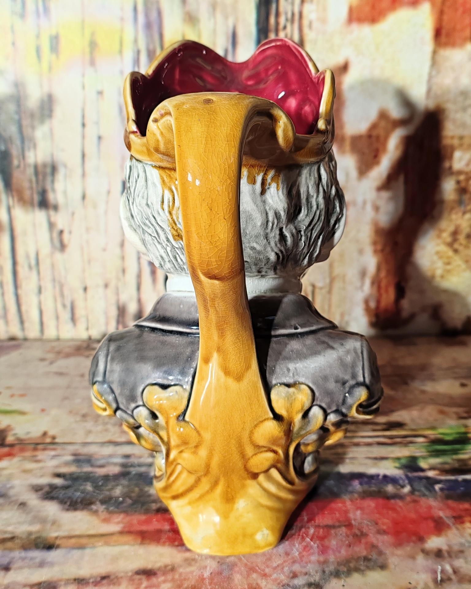 Barbotine pitcher from the Onnaing earthenware factory representing President Raymond Poincaré, stamped no. 816.