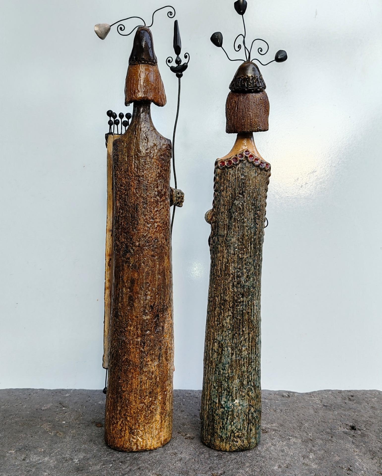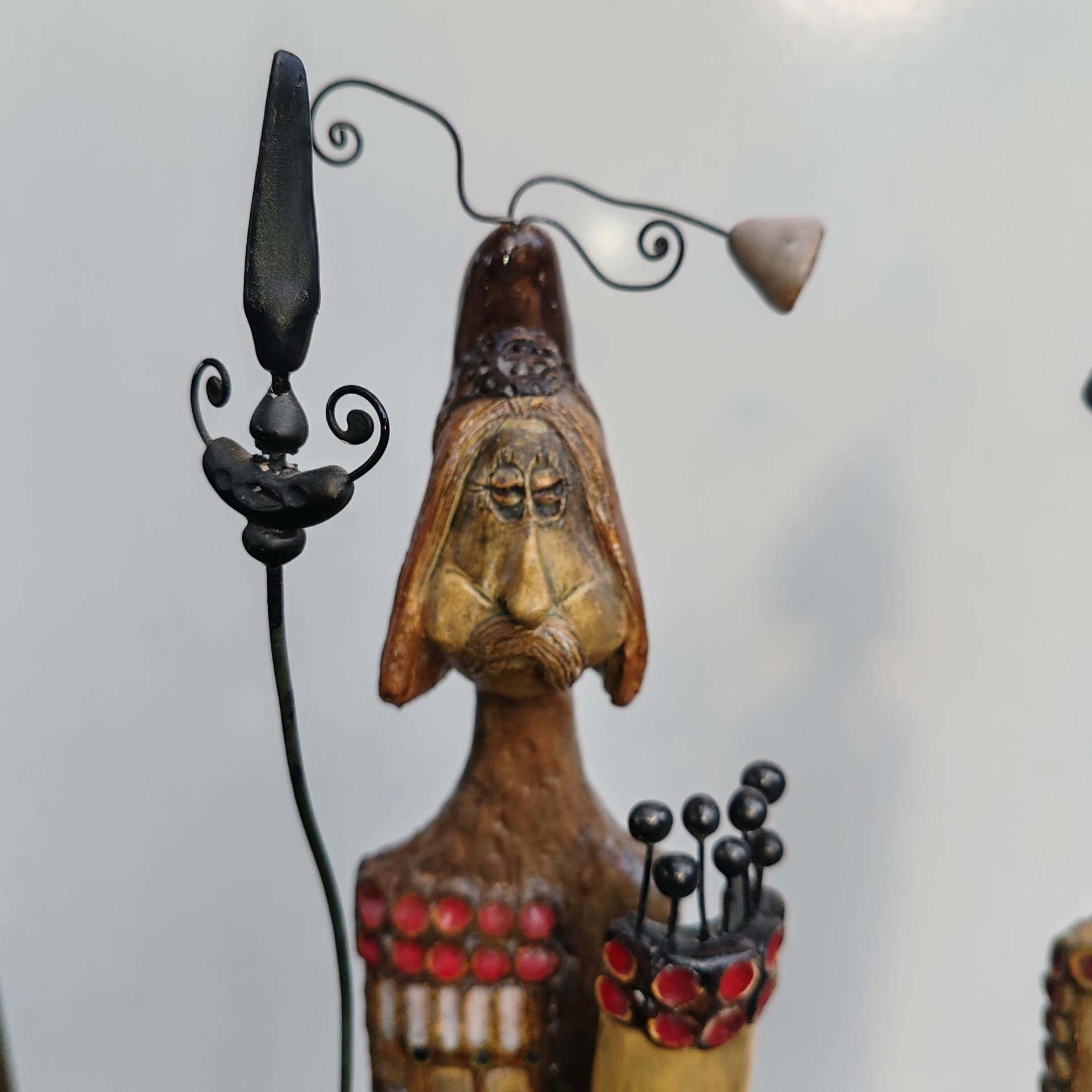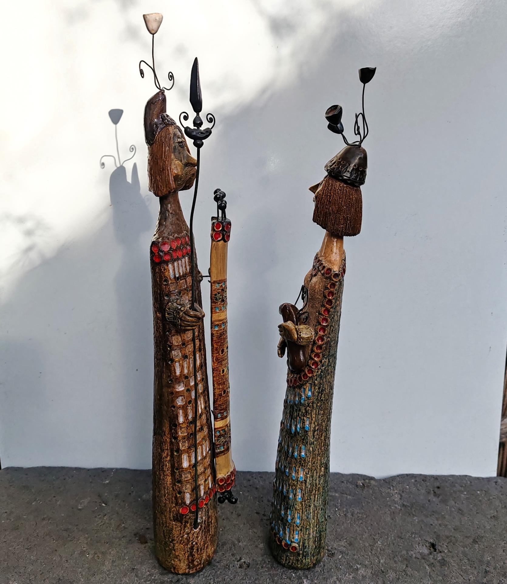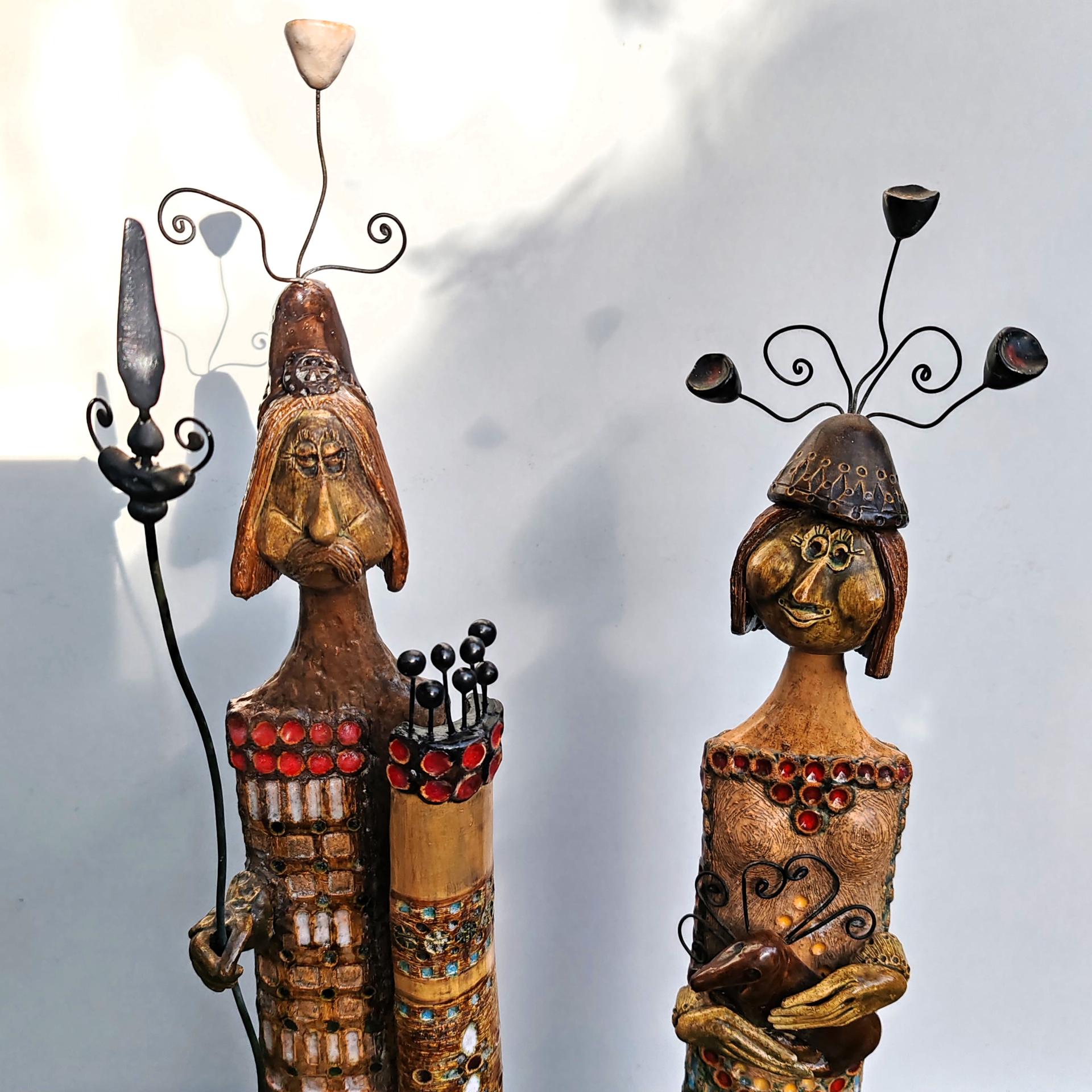 Raphael GIARRUSSO (1925 – 1986) & Accolay Sculpture Couple de guerriers Céramique émaillée et métal