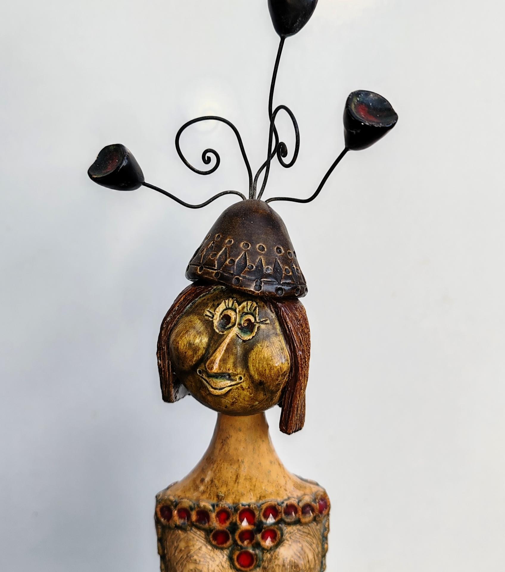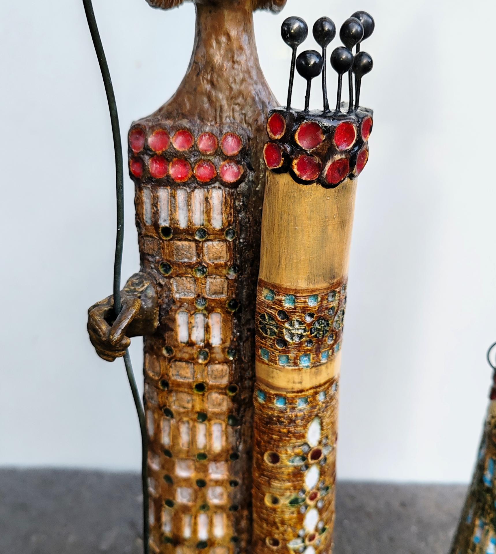 Raphael GIARRUSSO (1925/1986) & Accolay vers 1965 Sculpture Couple de guerriers Céramique émaillée et métal