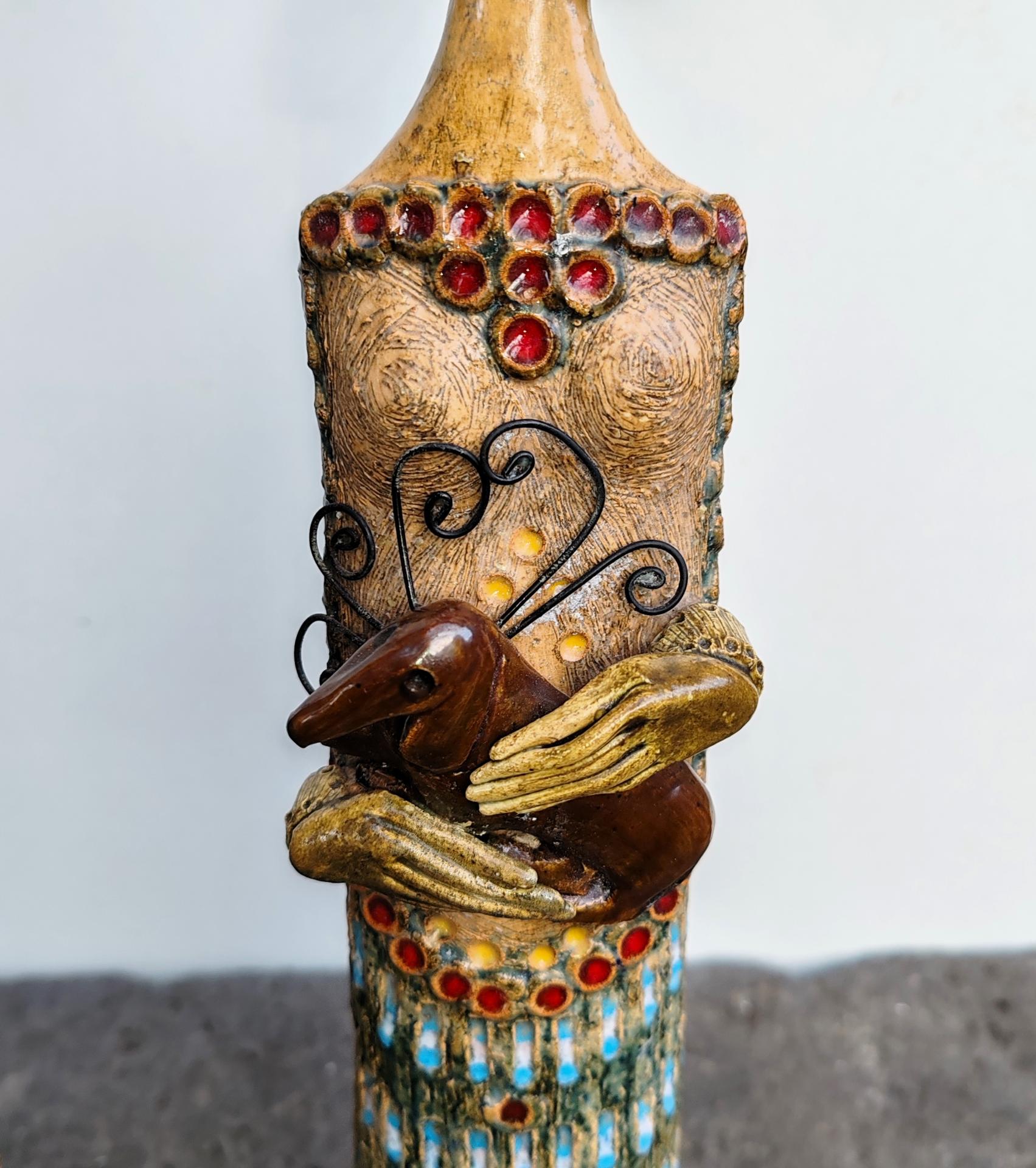 HomeBoutiqueArt décoratif, Objets d'art, Objets de collection, objets de vitrine, Sculptures, Terre cuite-faïence-porcelaine, VintageRaphael GIARRUSSO (1925/1986) & Accolay vers 1965 Sculpture Couple de guerriers Céramique émaillée et métal