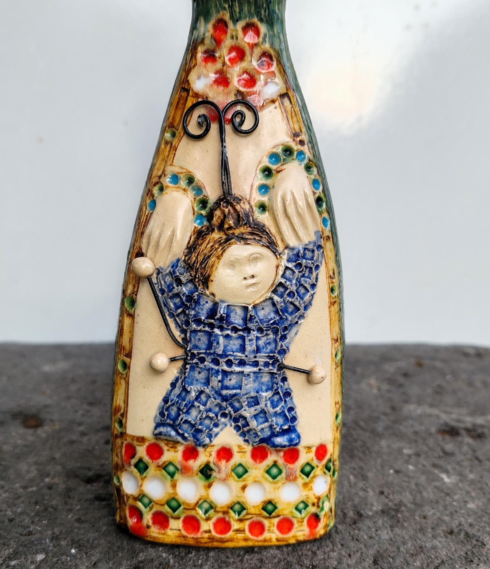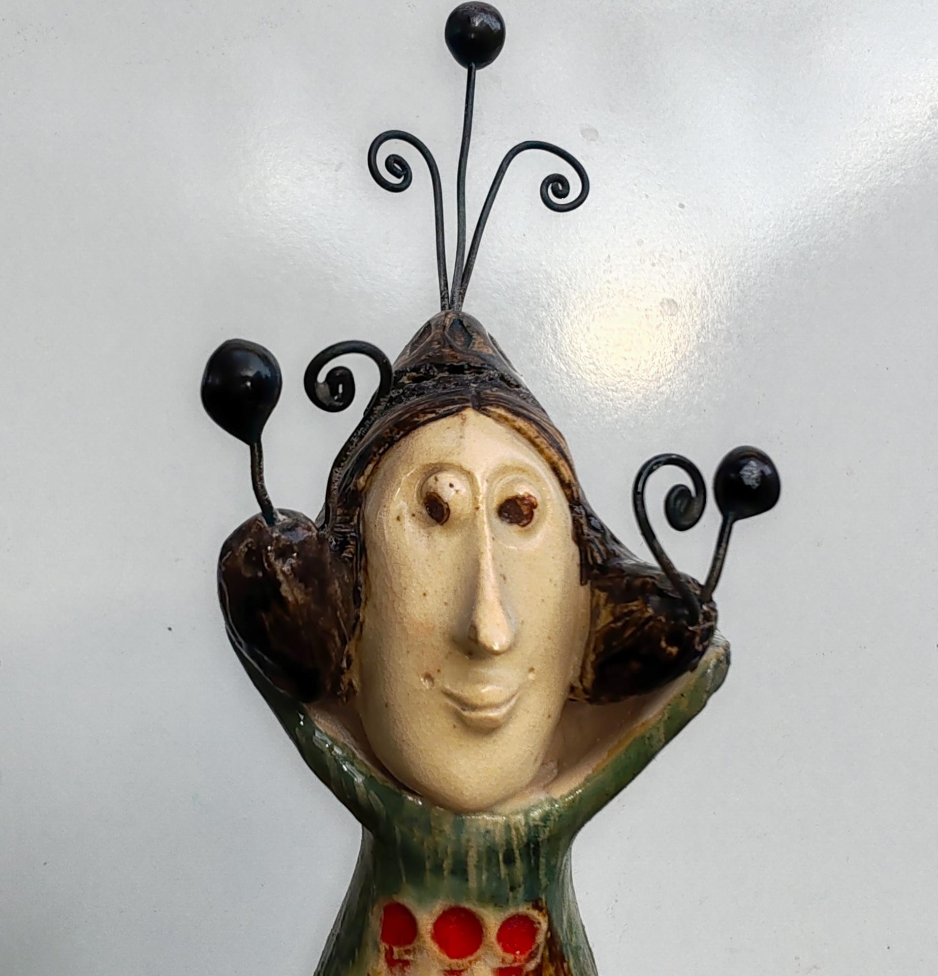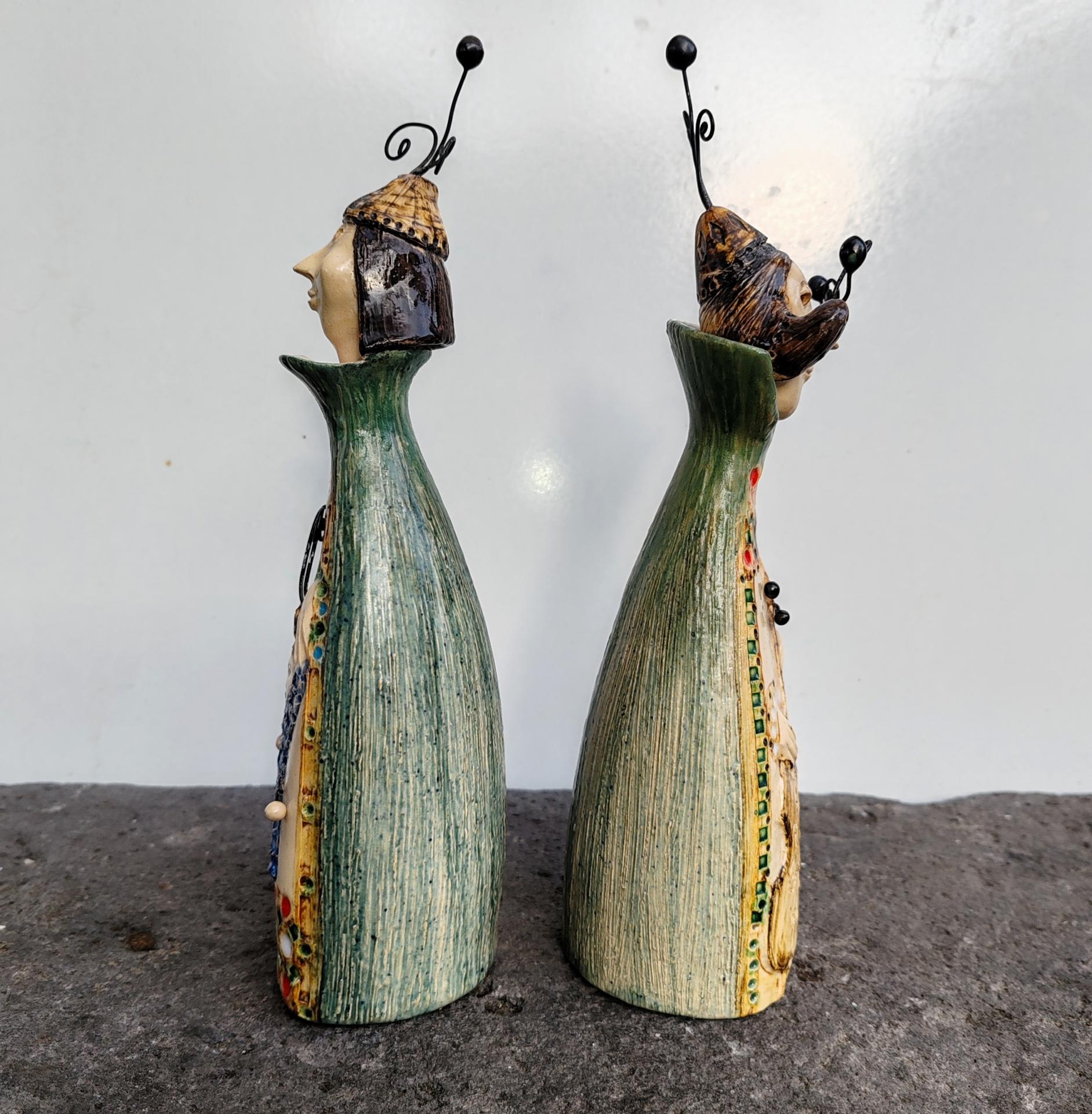 Raphael GIARRUSSO (1925 – 1986) & Accolay Sculpture Couple de personnages Céramique peinte et incrustations de fer.