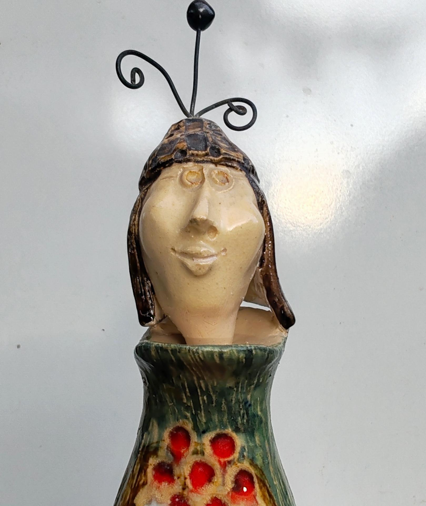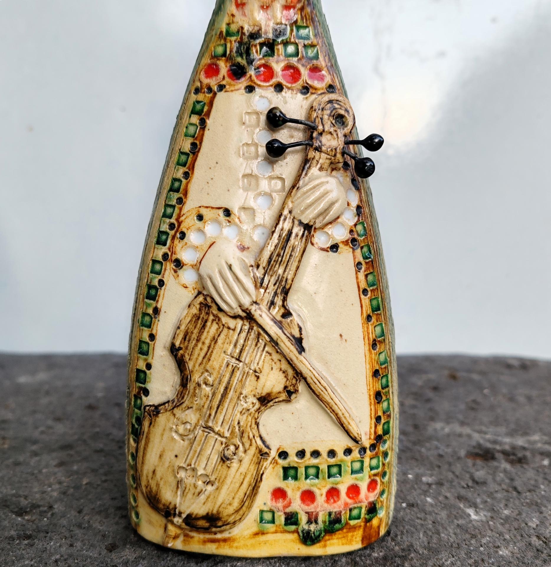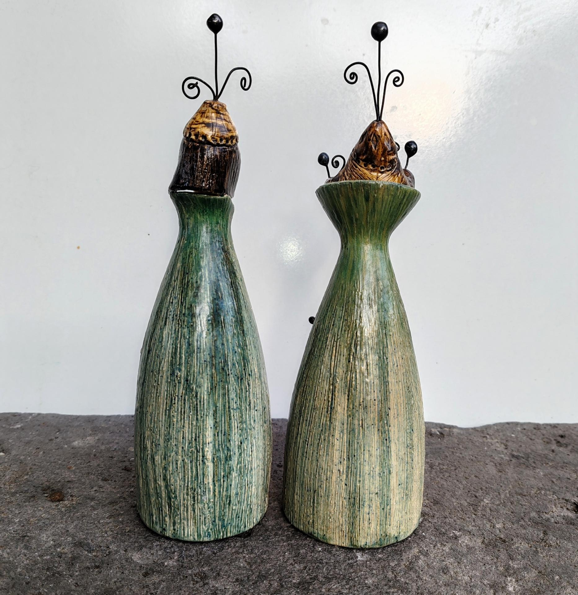 Raphael GIARRUSSO (1925 – 1986) & Accolay Sculpture Couple de personnages Céramique peinte et incrustations de fer.