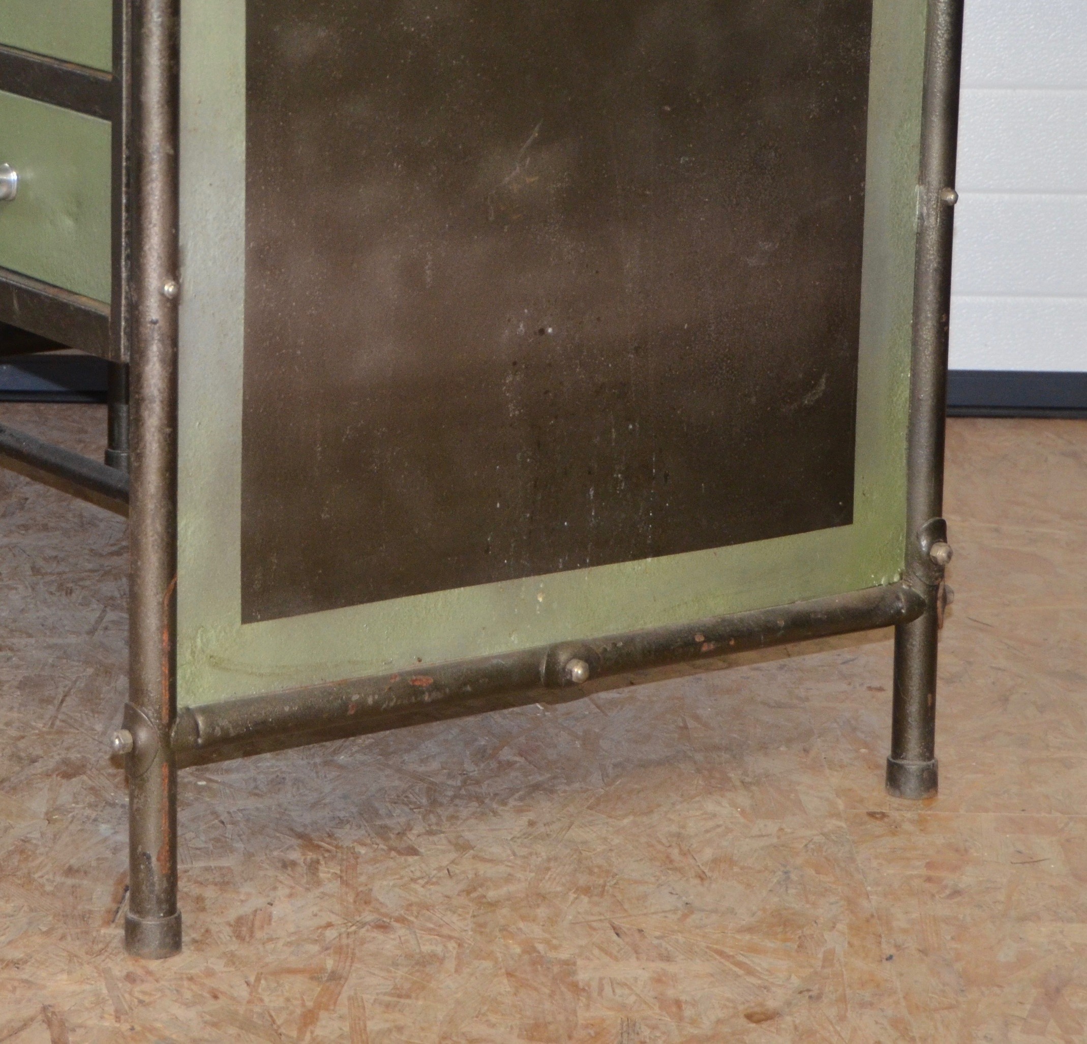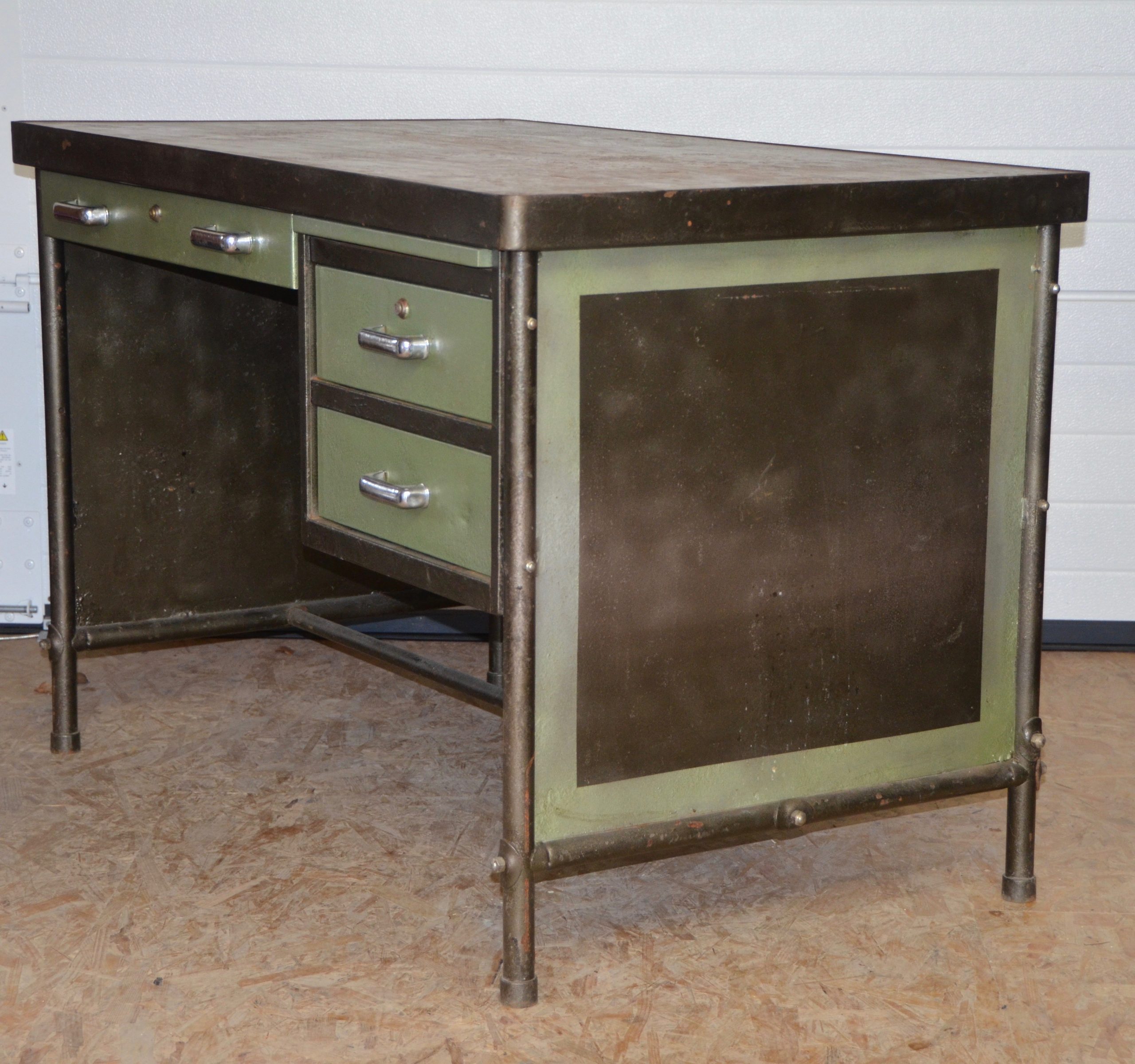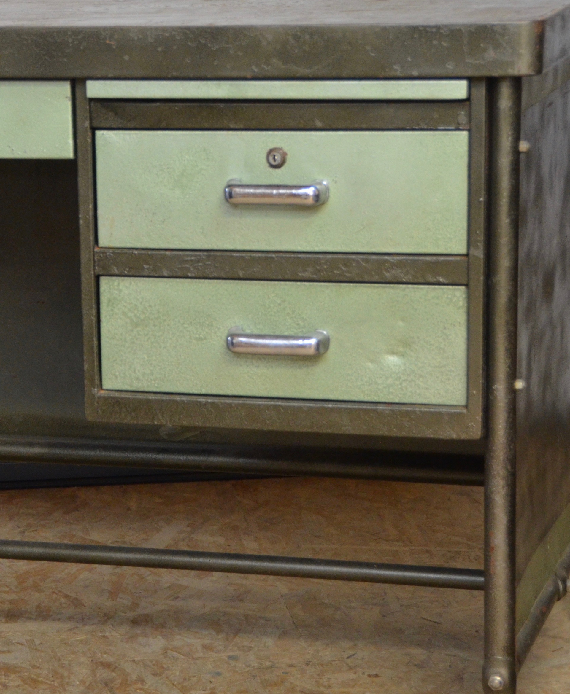 RENÉ HERBST (1891-1982) FLAMBO Publisher Iron desk with rectangular top, Modernist style, block of two drawers stacked on the right and a shelf, a large central drawer.