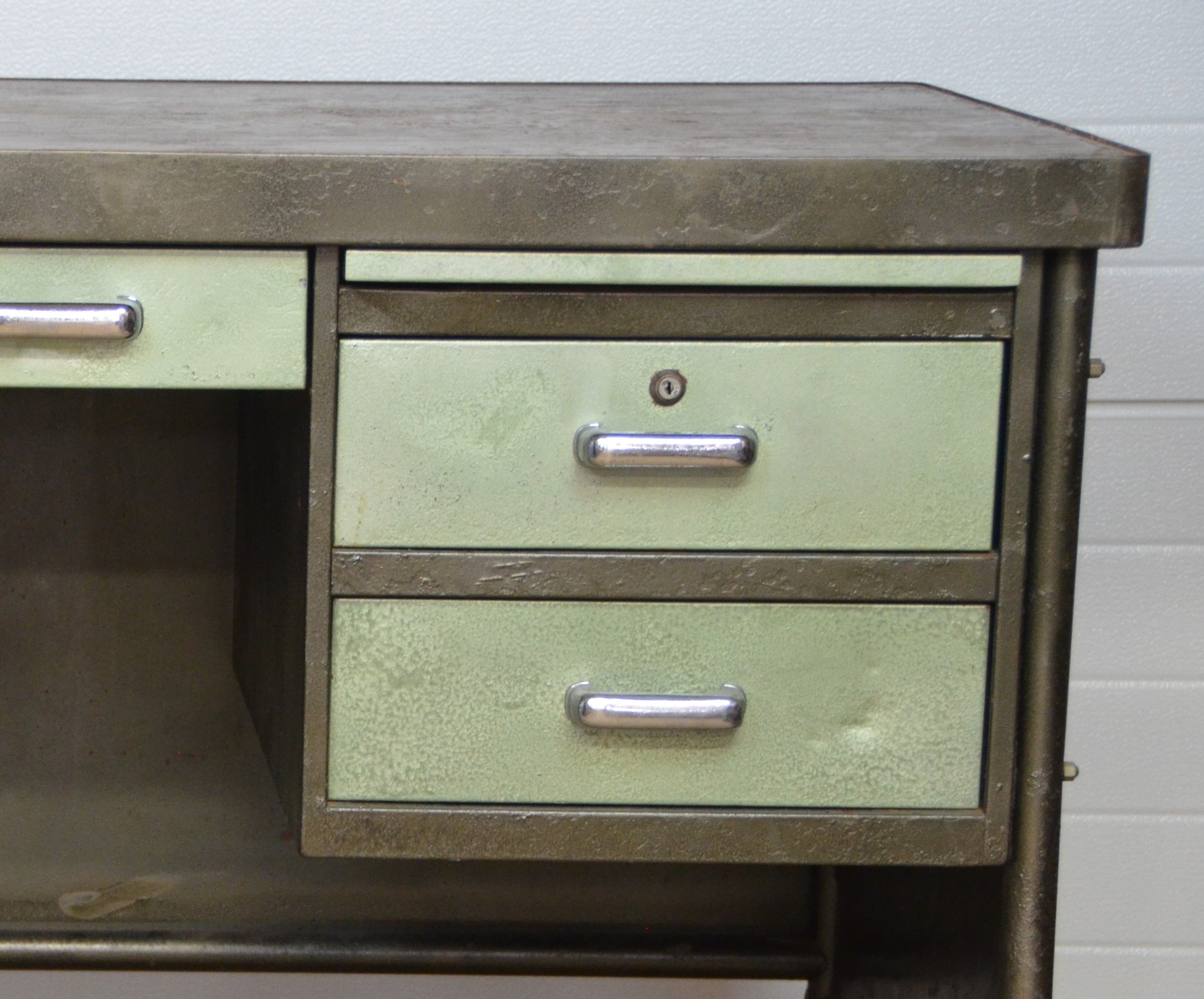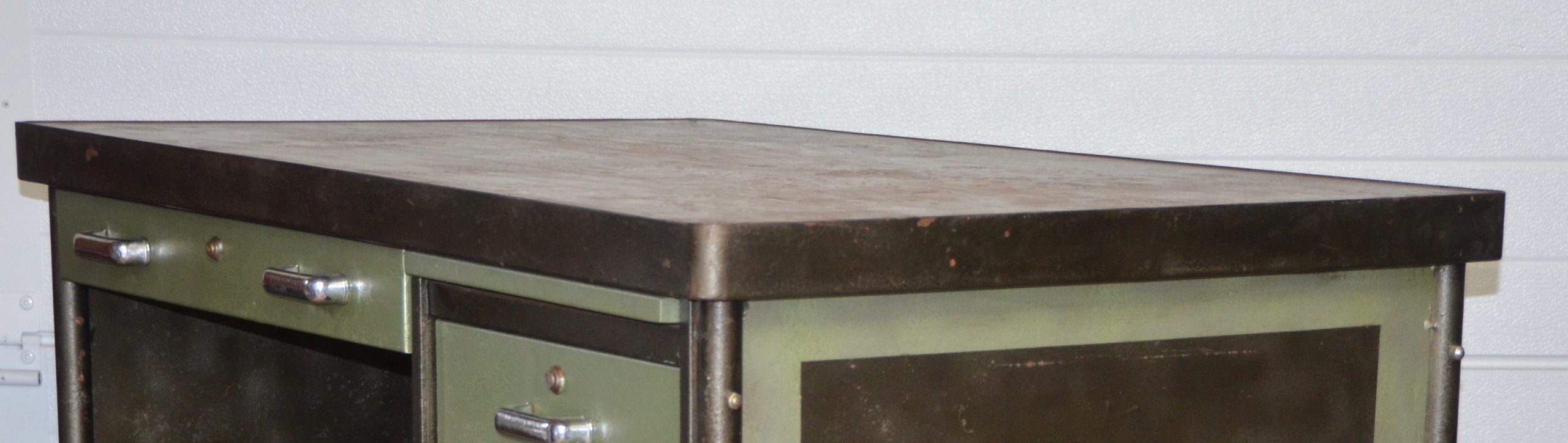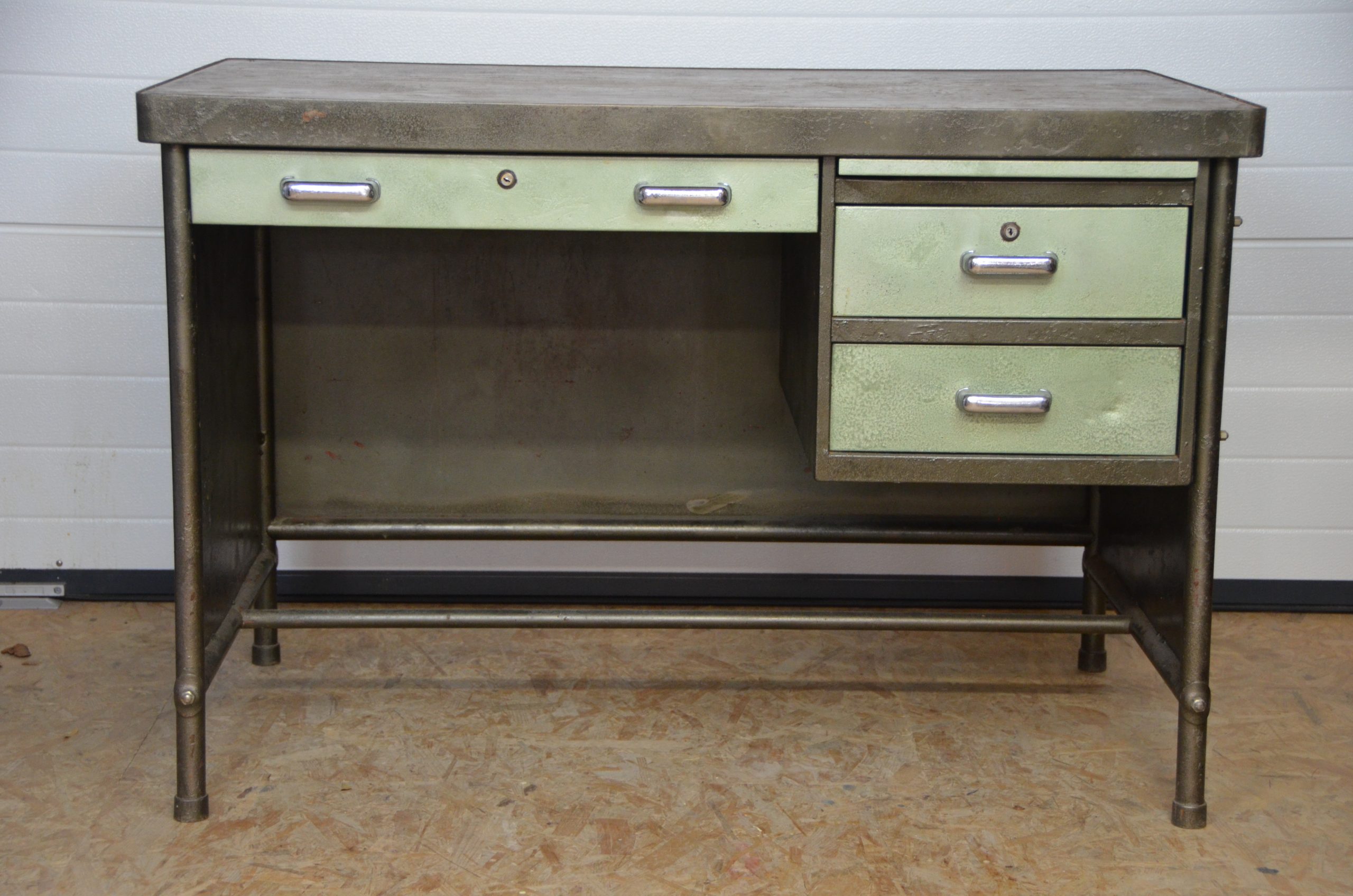 RENÉ HERBST (1891-1982) FLAMBO Publisher Iron desk with rectangular top, Modernist style, block of two drawers stacked on the right and a shelf, a large central drawer.
