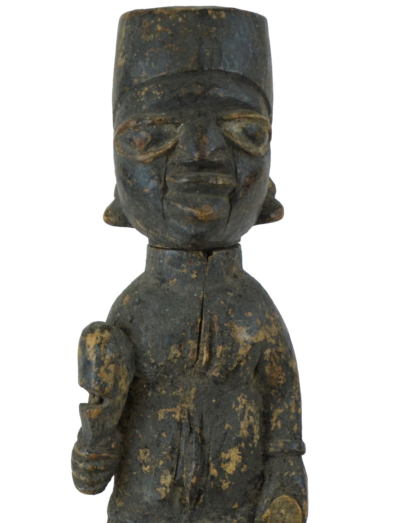 THIS STATUETTE IS PARTICULARLY REMARKABLE BY ITS ARTICULATED HEAD, TRACE OF POLYCHROMY AND THE EMPTY INTERIOR CARRYING THE SECRET OF YORUBA MAGIC.