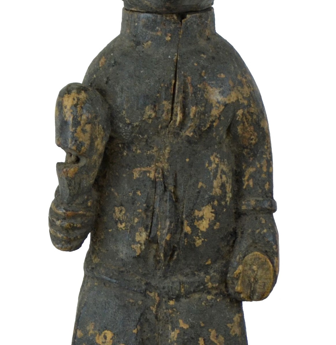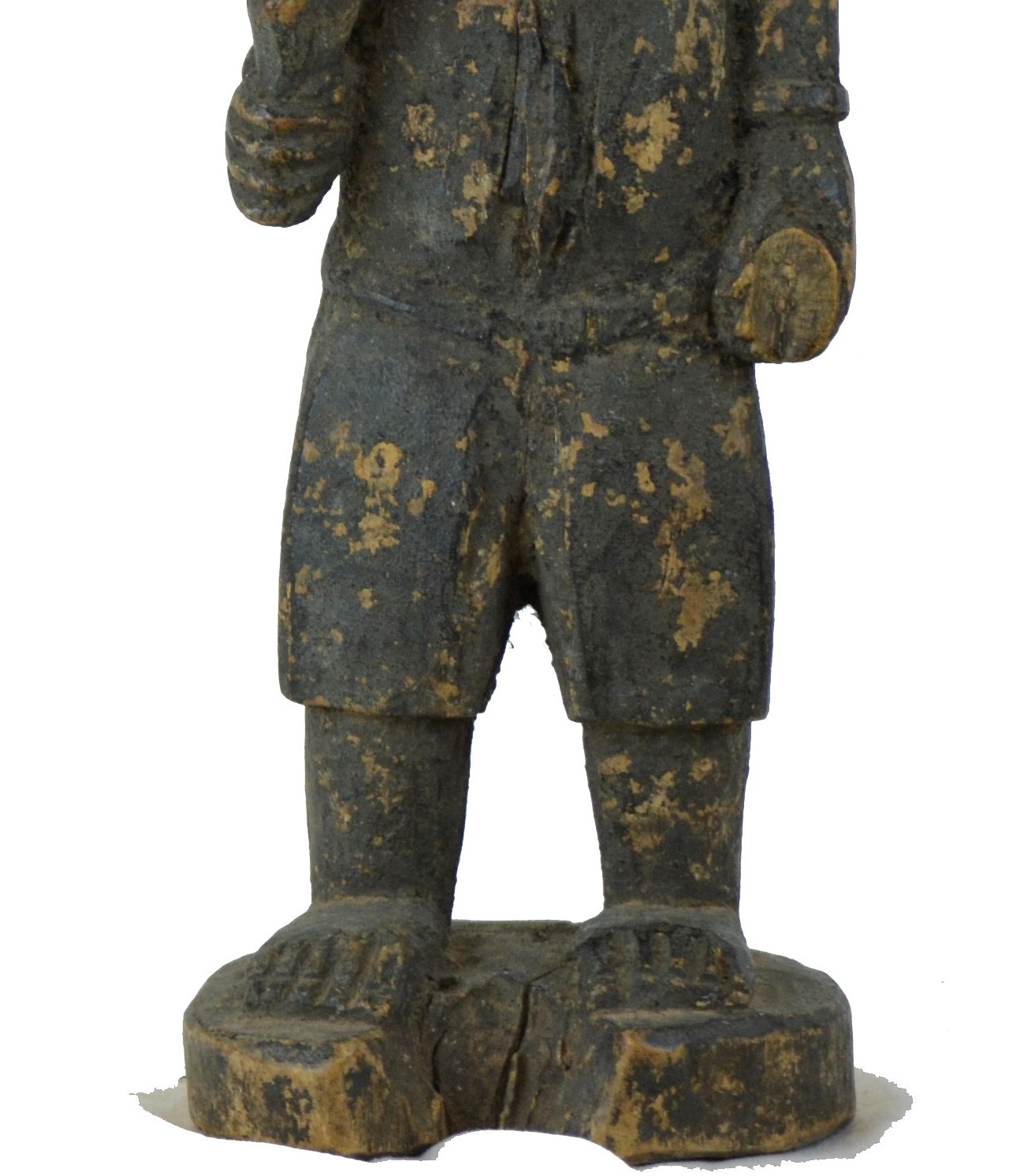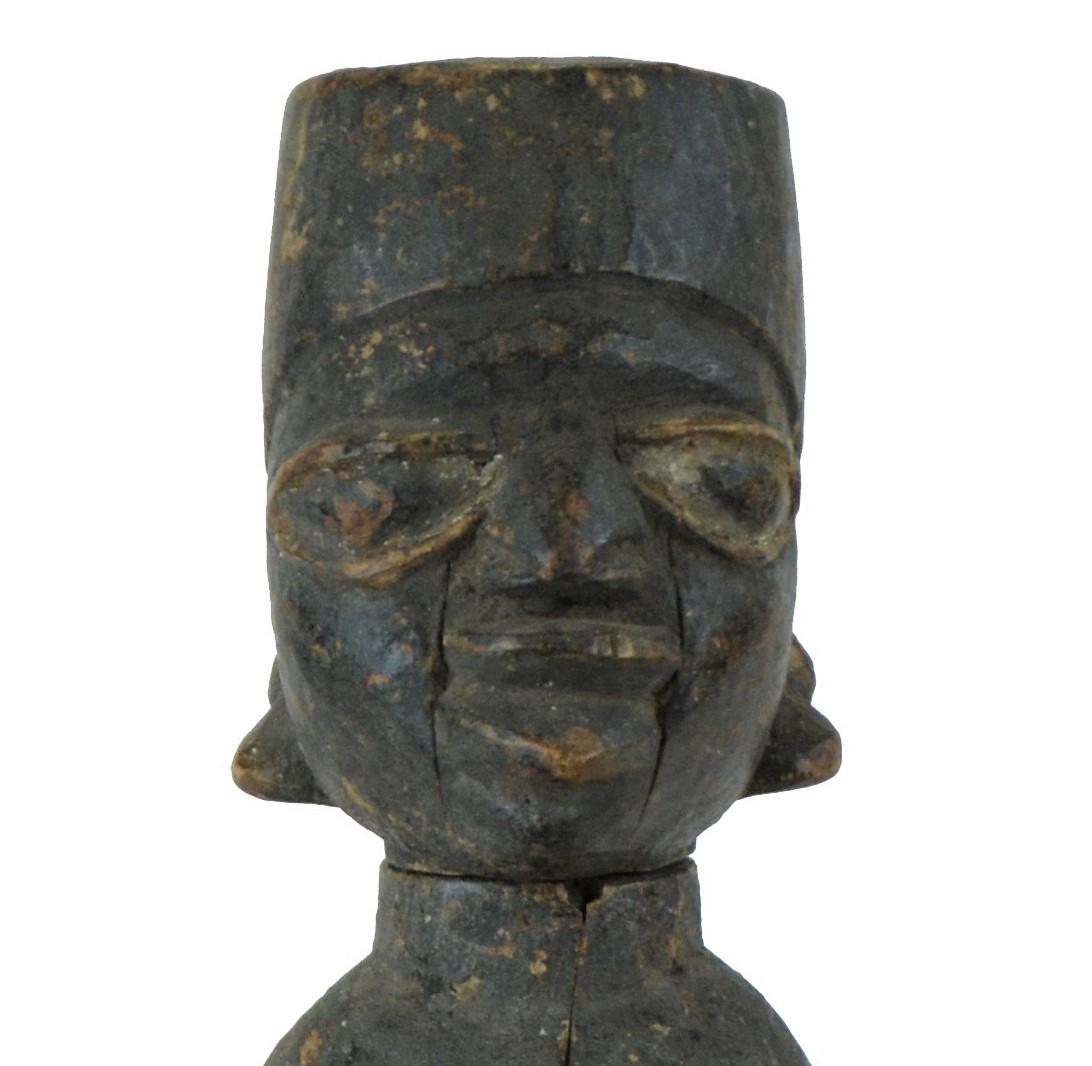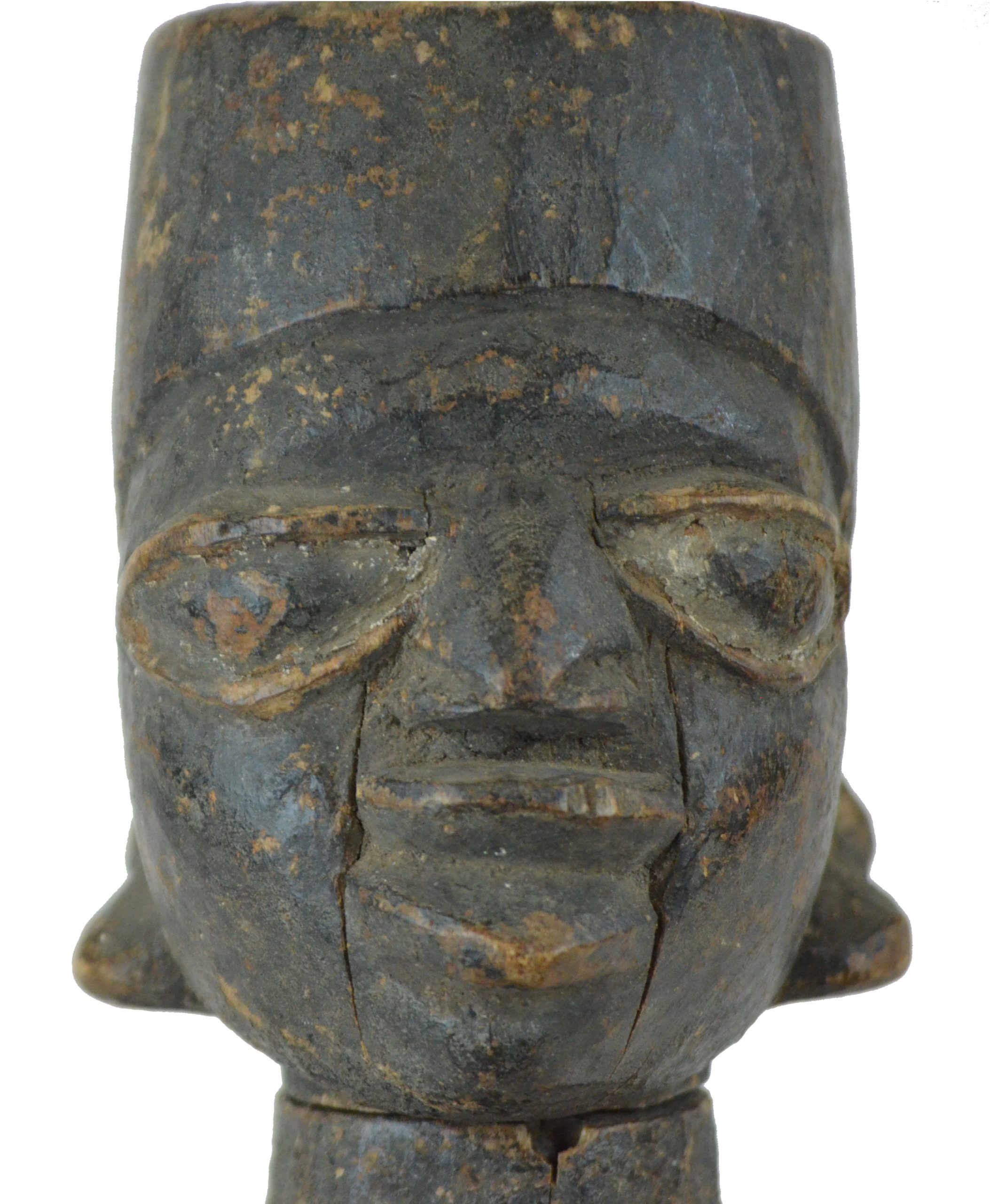 Cette statuette est particulièrement remarquable par sa tête articulée, trace de polychromie et l’intérieur vidé portant  le secret de la magie Yoruba.