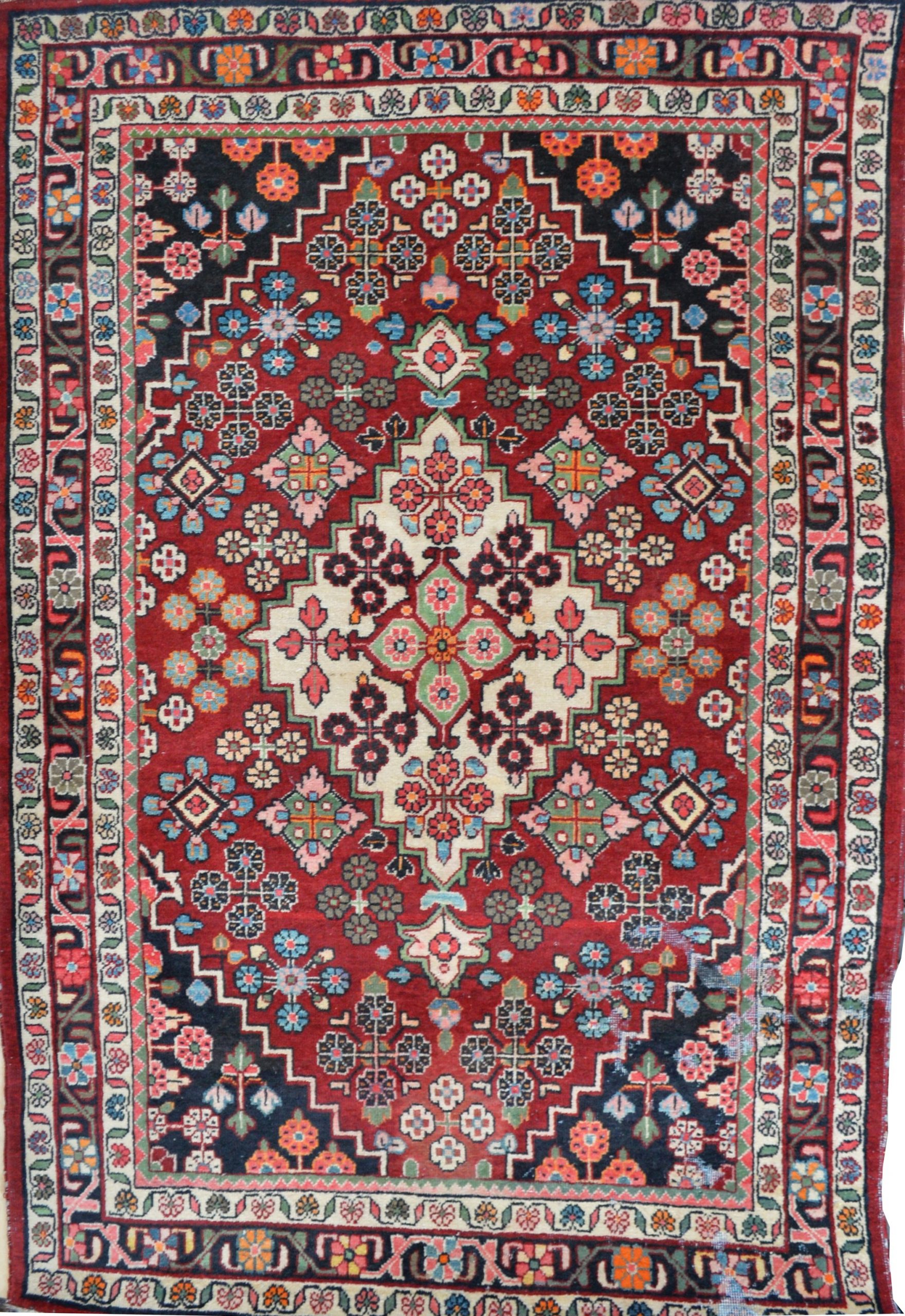 The colors are dominated by various shades of indigo blue and madder red. Old Hamadan rugs can be very attractive items.