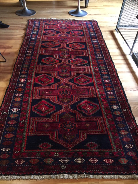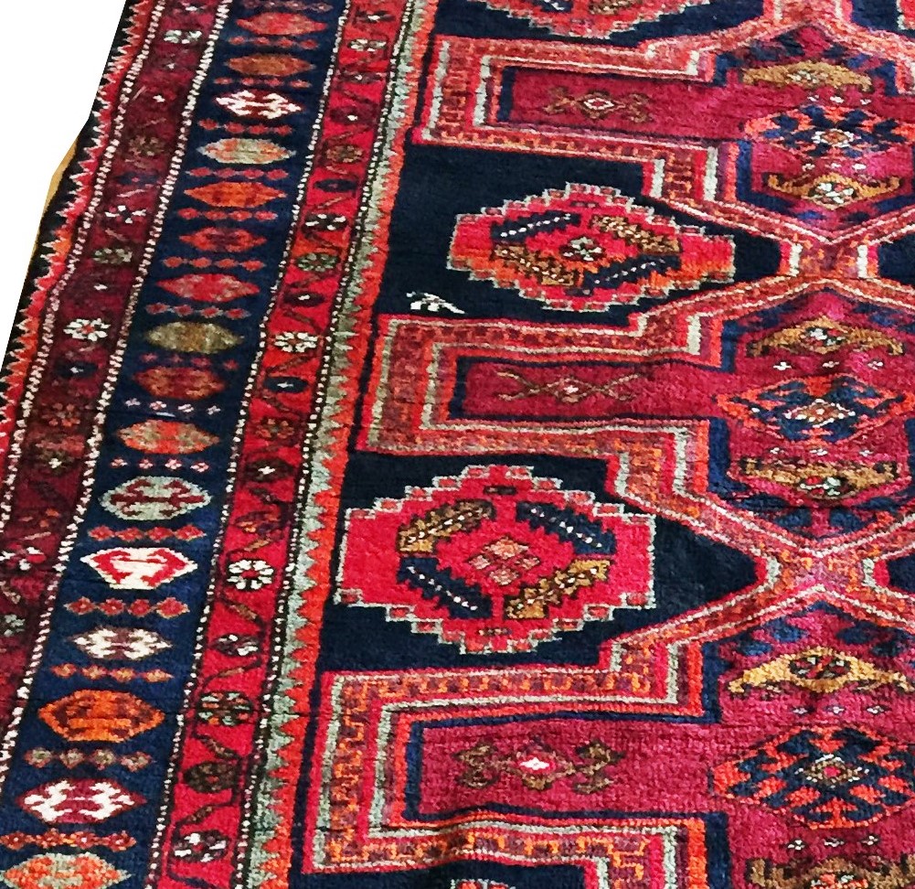 Une des particularités de ses tapis est que la bordure la plus à l’extérieur est d’une teinte unie semblable à celle du fond du tapis. Début du XX ème. BE
