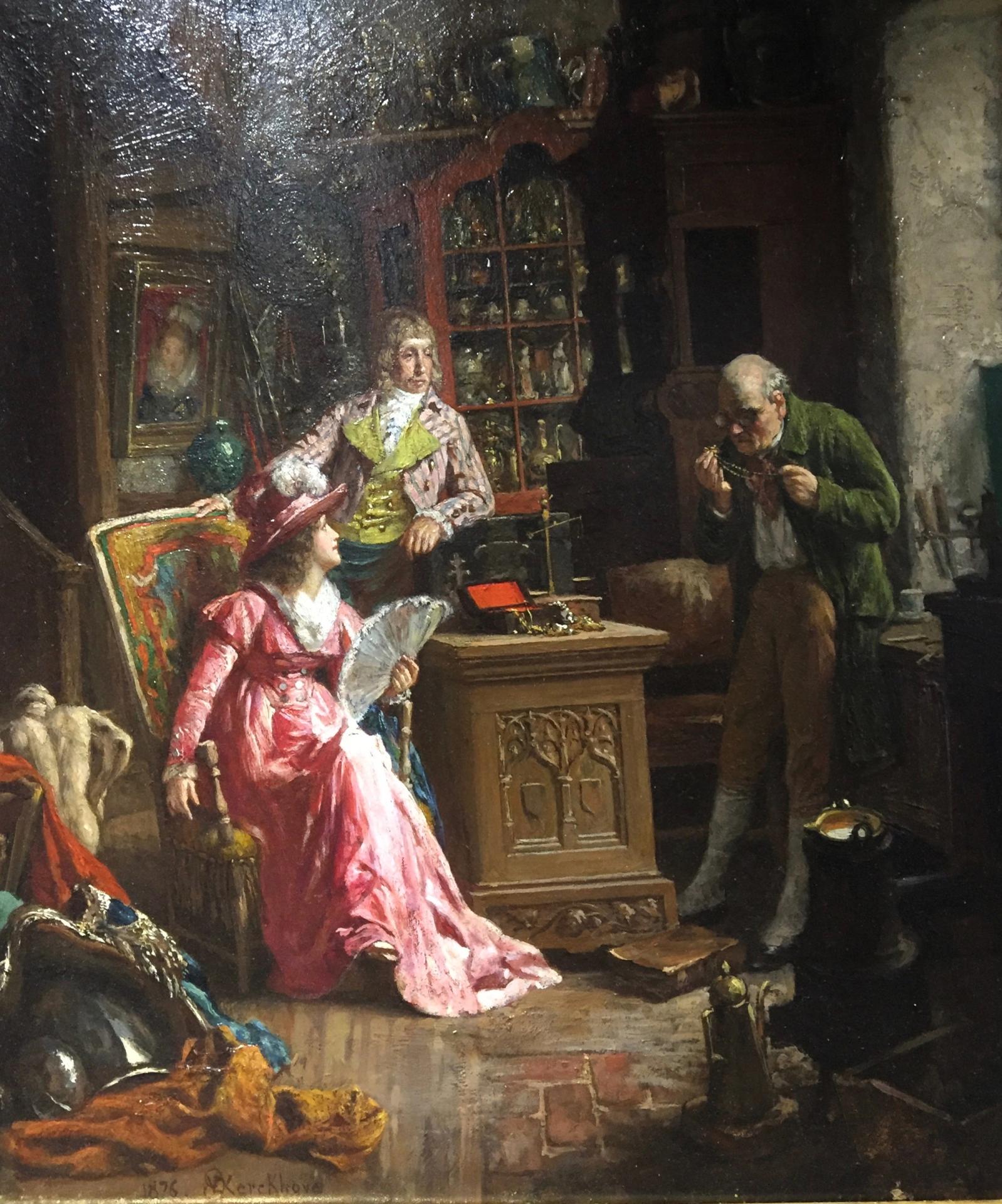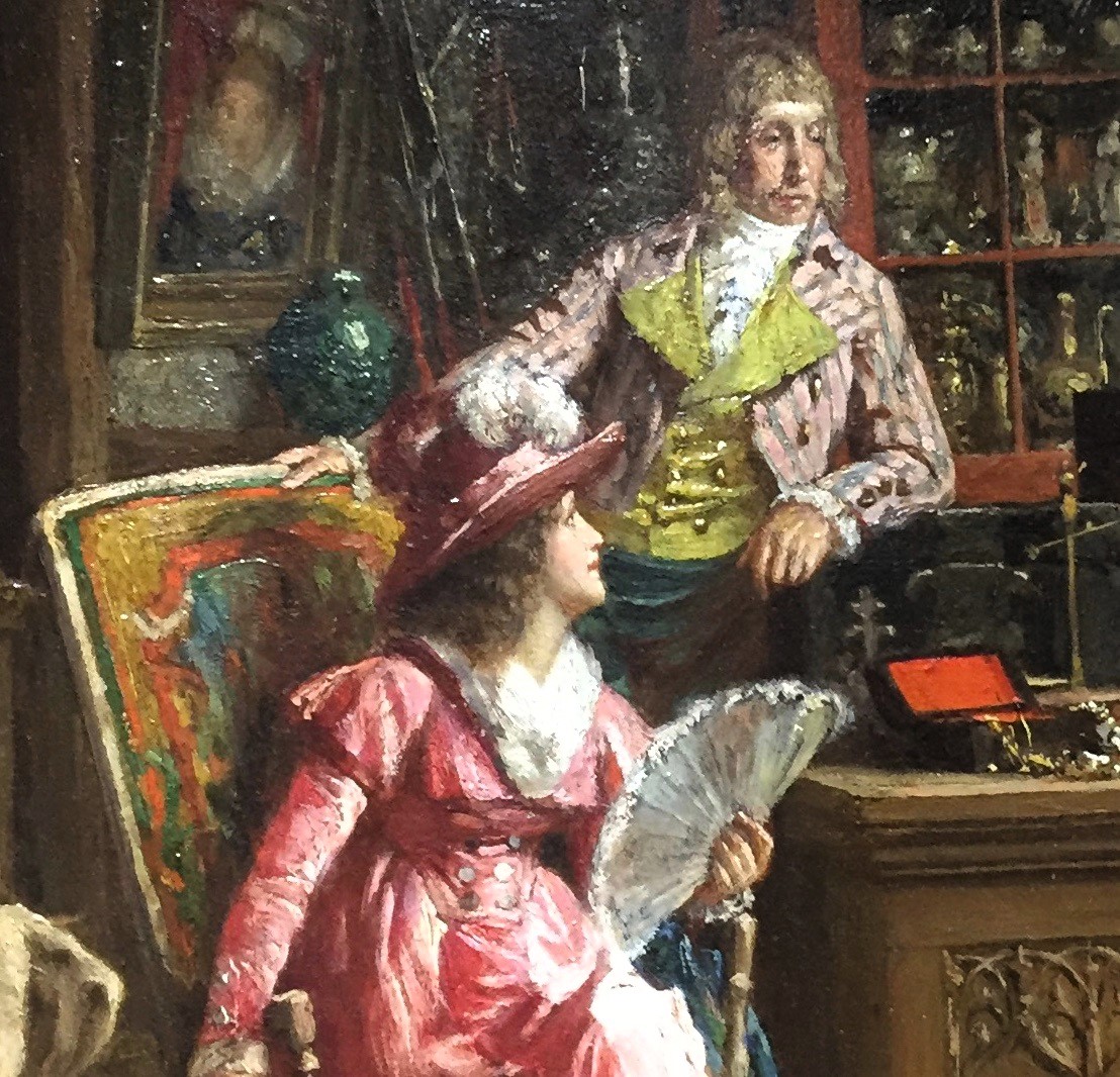 VAN DEN KERCKHOVE Jan, 1822-1881 Chez l’antiquaire, 1876 huile sur panneau (quelques restaurations) cadre bois doré d’époque