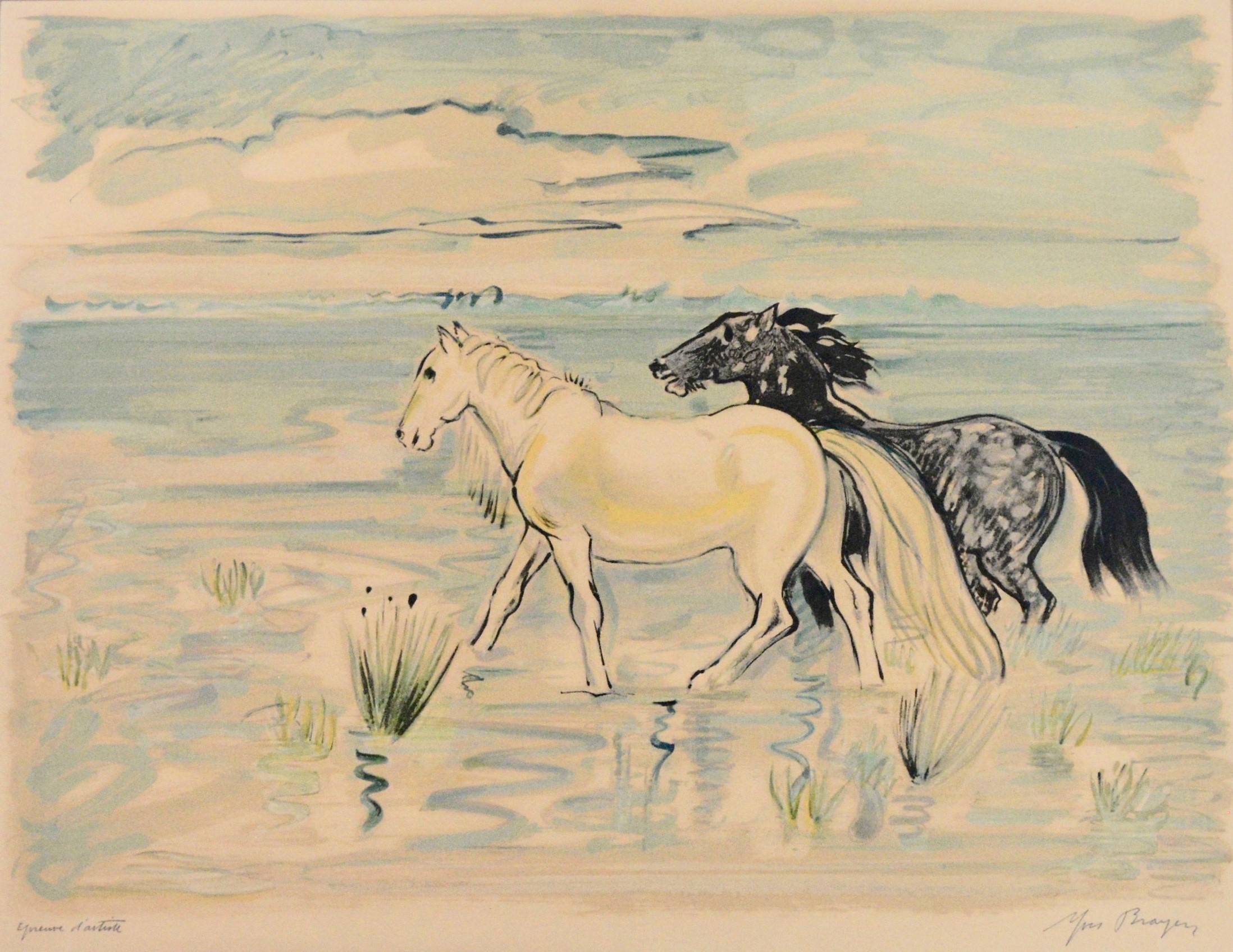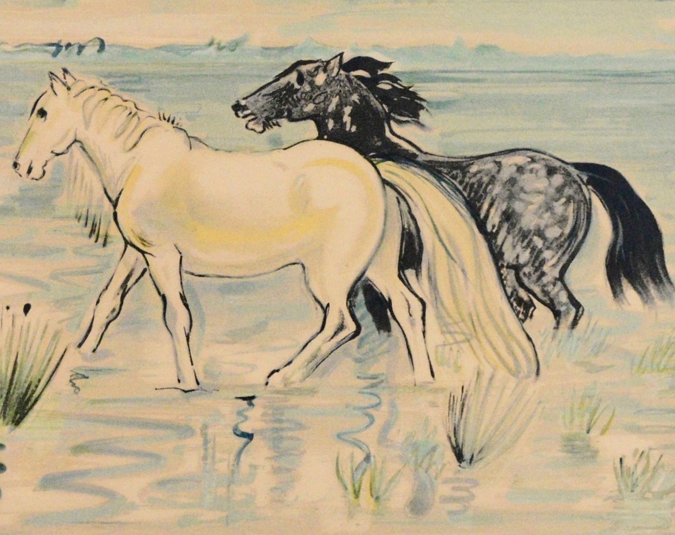 Subject: « Horses in Camargues », On beautiful and thick Arches paper